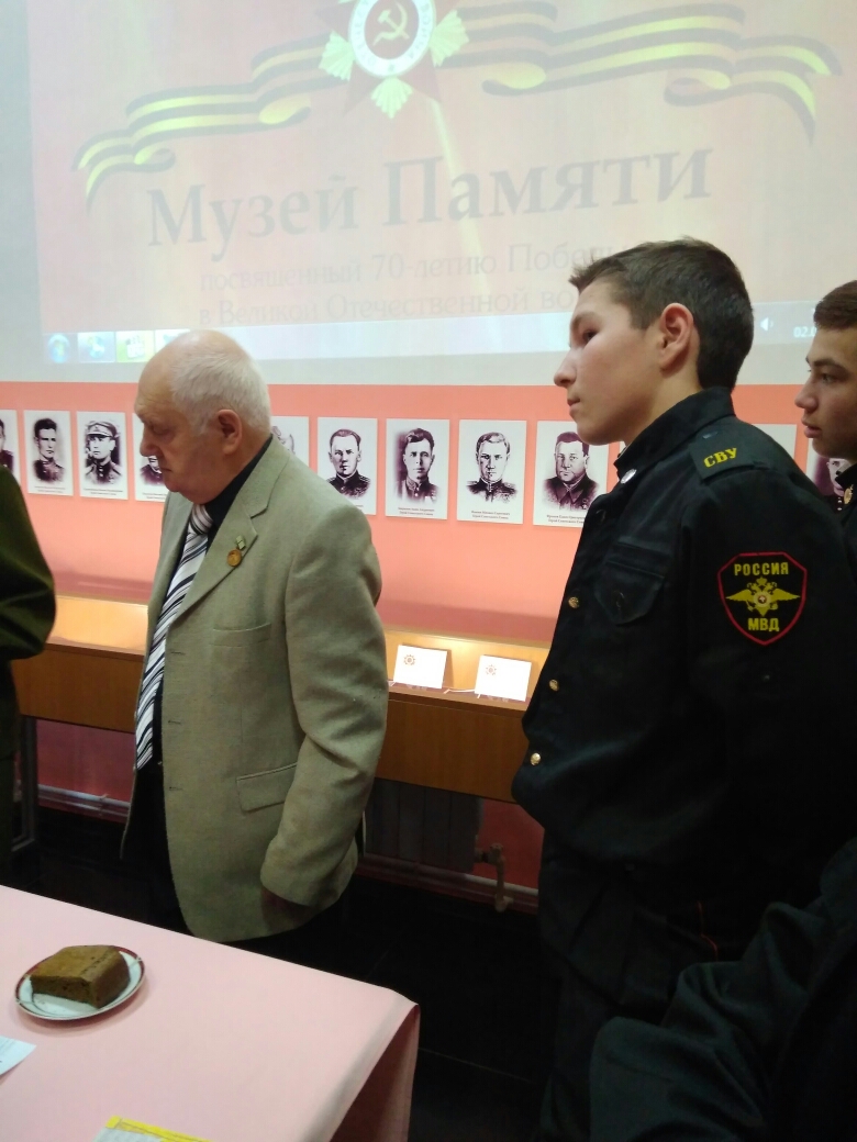 Второй частью мероприятия стала встреча с жителем блокадного Ленинграда Владимиром Громовым. Его пригласили специально для того, чтобы он ответил на множество вопросов, появившихся у курсантов ЕСВУ во время предыдущего заседания клуба. Оно состоялось в Музее Памяти 27 января и было посвящено годовщине снятия блокады Ленинграда. Отметим, стойкое сопротивление жителей города немецко-фашистским захватчикам и последующее его освобождение также оказали огромное влияние на исход Великой Отечественной войны.