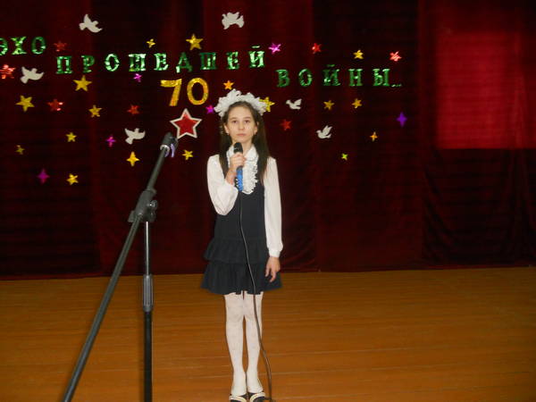 «Буду солдатом» в номинации «вокальный дуют», самые взрослые – Сафина Диляра и Антипина Инна (11 класс) в номинации «вокал – соло». Исключительно все школы добросовестно готовились к Конкурсу, широко использовали дополнительные средства выразительности (мультимедийные презентации с использованием местного материала, театрализованные этюды, фотографии своих родственников – участников Великой Отечественной войны). .Хочется отметить зрелищность, красочность выступлений Бураковской школы с песней « Прадедушка» , солистка Киямова Эндже, рук. Захарова Л.И., где выступление сопровождалось