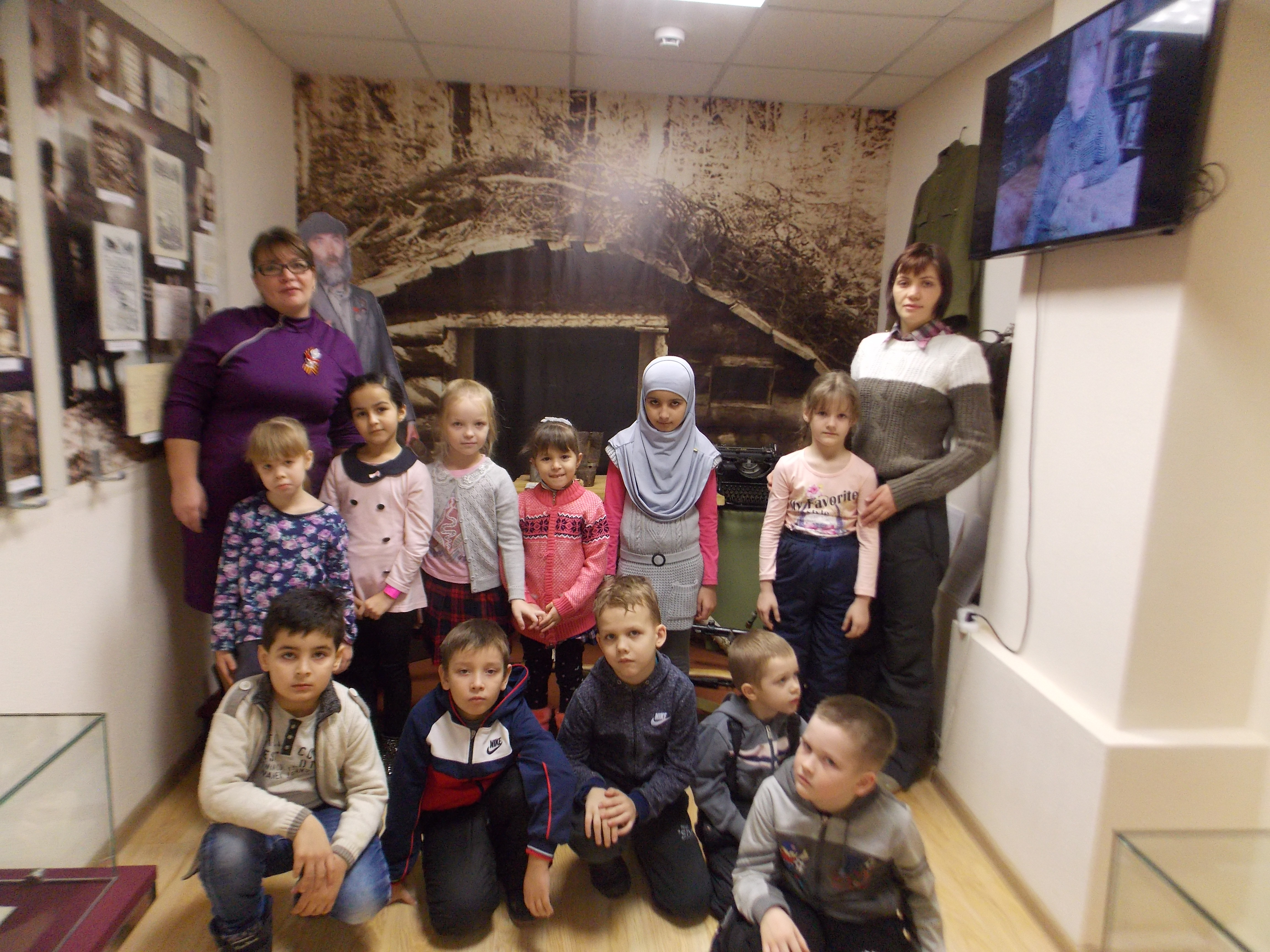 Во время экскурсии ребята не только ознакомились с материалами в период Великой Отечественной Войны, но и с интересом прослушали воспоминания участников боевых действий с немецко-фашистскими захватчиками. В завершении экскурсии ребята исполнили песни военных лет.