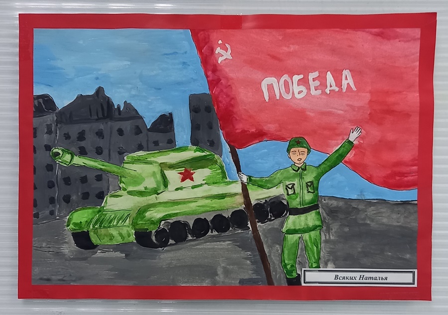 Первое место в конкурсе было присуждено Всяких Наталье, воспитаннице 6 класса за рисунок «Победа». По итогам конкурса оформлена выставка.