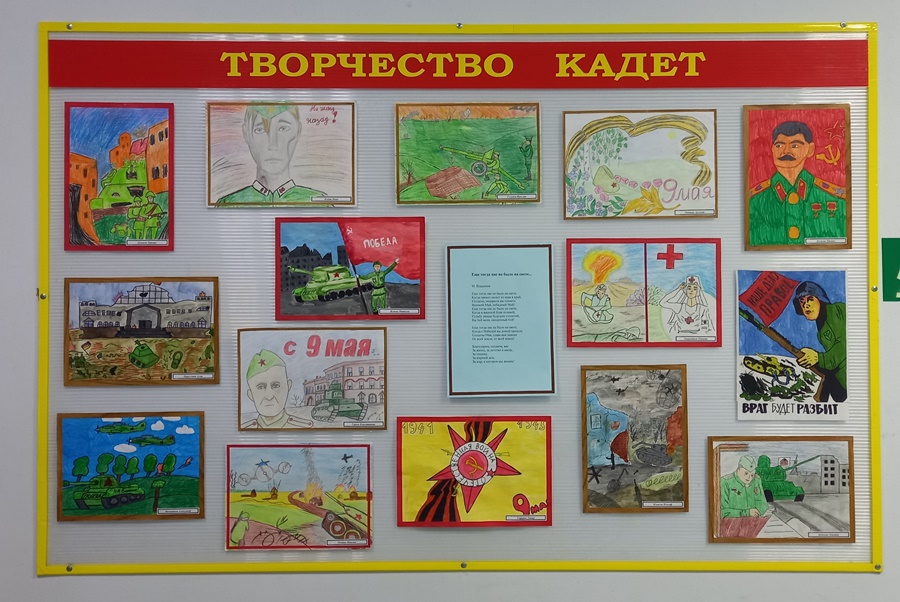 В преддверии Дня Победы в ГБОУ "Тетюшская кадетская школа-интернат" среди 5-6 классов был проведён конкурс рисунков «Этих дней не смолкнет слава».