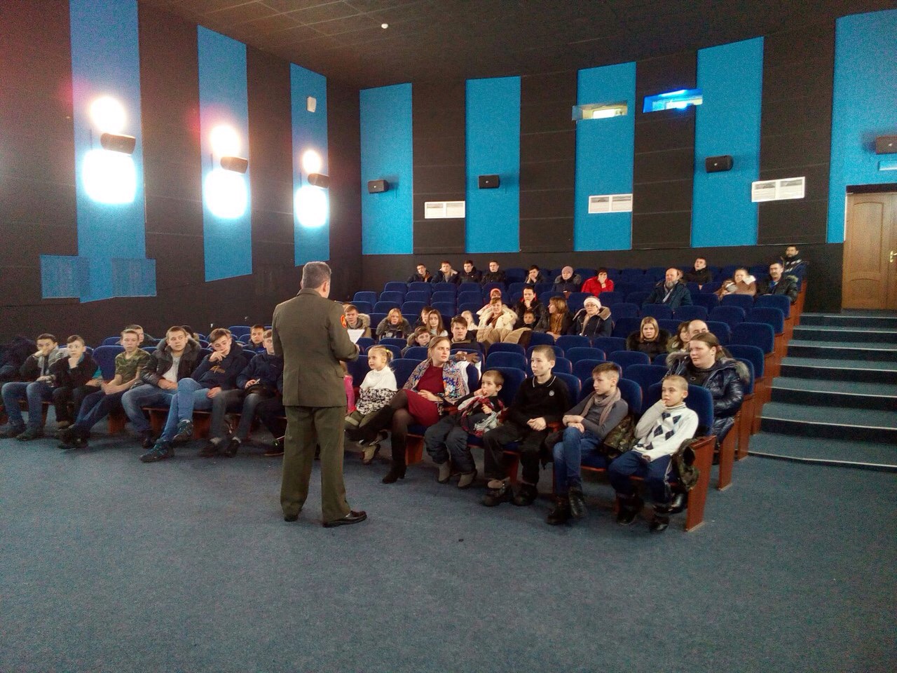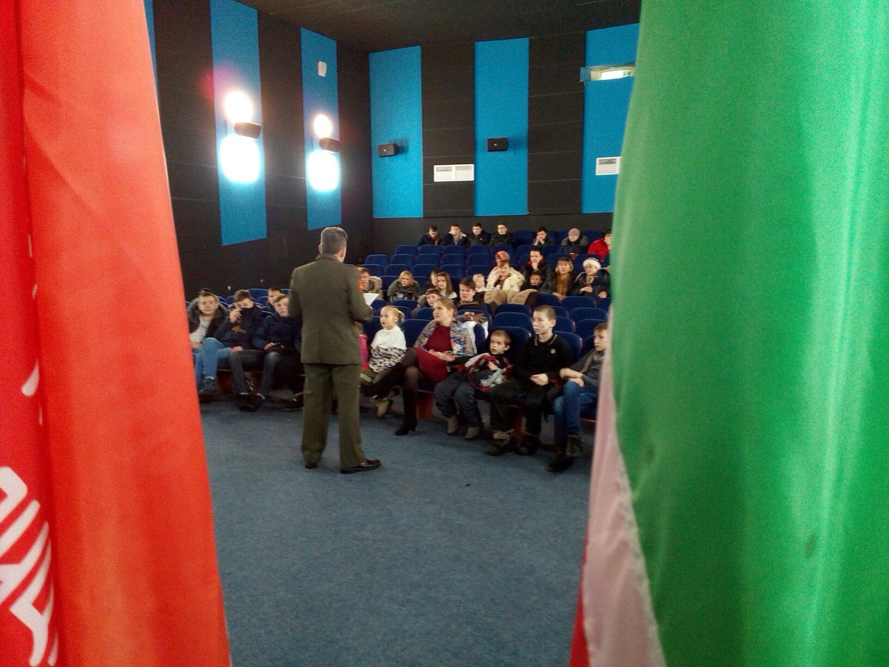 Перед началом сеанса фильма выступил перед собравшимися, руководитель районного штаба «ЮНАРМИИ» И.И.Мидхатов, который рассказал о фильме и о героях, наших земляках.