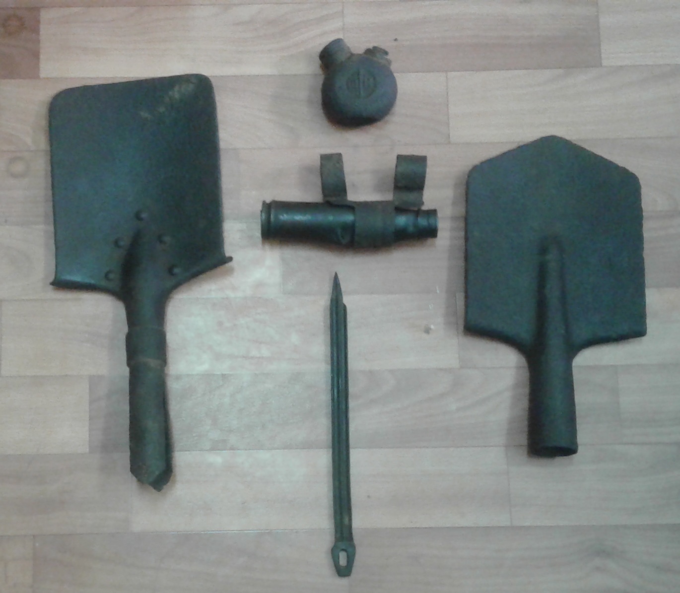 Среди найденных на месте боев предметов оказались двухкамерная масленка для ухода за оружием, в ней хранилось щелочное и нейтральное масло, саперные лопатки советского и немецкого образца, металлический колышек, которым крепили палатки солдаты вермахта, деталь вооружения, которую еще предстоит атрибутировать.