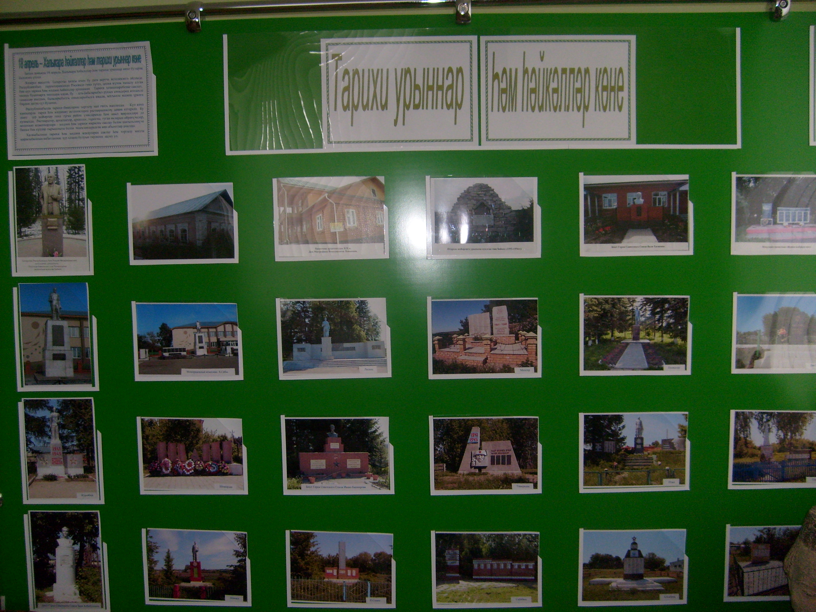В Сабинском краеведческом музее открылась фотовыставка «Памятники и исторические места Сабинского района». Выставка приурочена к Международному дню памятников и исторических мест (18 апрель).