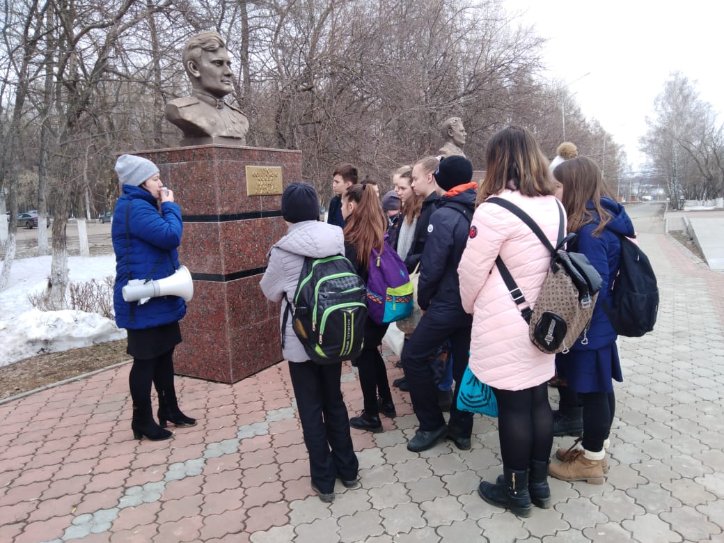 5 апреля, в рамках акции «Музейная весна Татарстана -2019» «Неделя добрых дел», прошла пешеходная экскурсия на Бульваре Победы «Герои никогда не умирают, герои в нашей памяти живут»для учеников 6 классашколы № 4. Экскурсия началась у памятника «Войну освободителю», далее ребята прошли к бюстам Героев Советского Союза Ларионова Г.Ф. и Майкова Н.И, полного кавалера ордена Славы – Васильева А.А. Сотрудники музея рассказали юным заинцам о земляках, принявших участие в боевых действиях и их ратных подвигах; о тружениках тыла и детях военных лет.