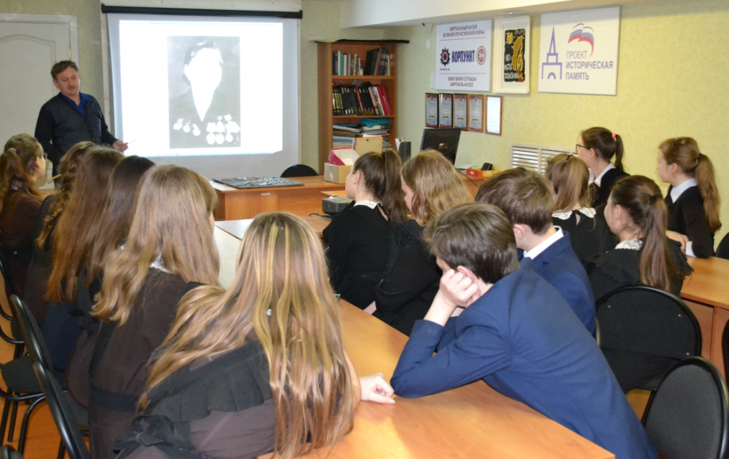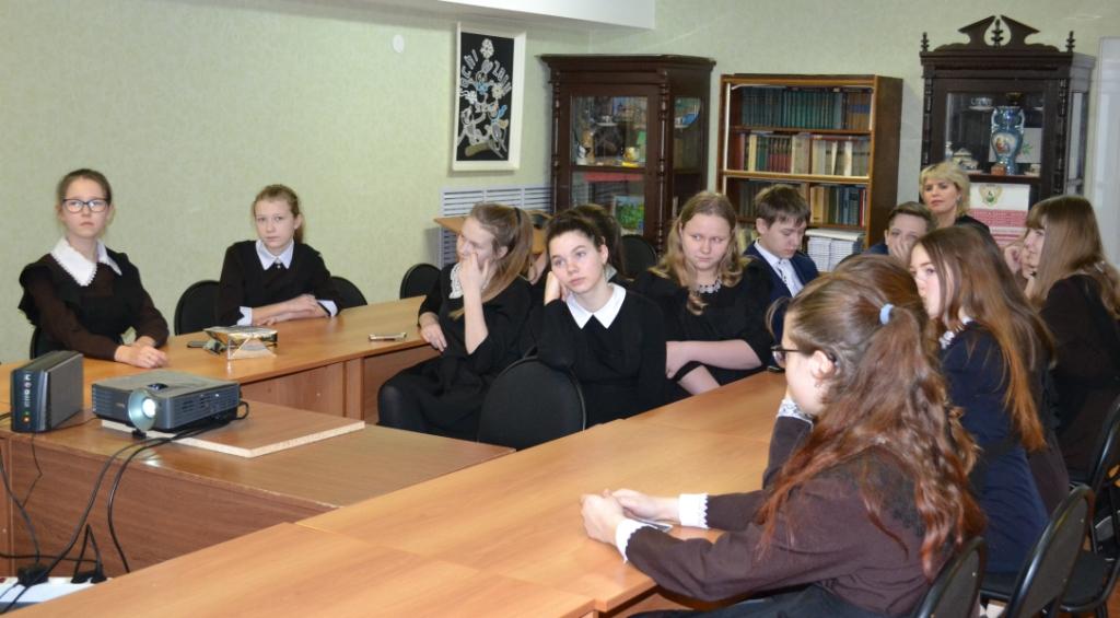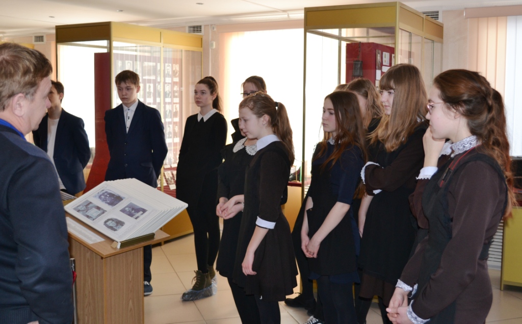 20 февраля 2019 г. в рамках районного месячника военно-патриотической работы Музей родного края посетили учащиеся 8 класса Алексеевской школы №2. Для них было проведено комплексное мероприятие (лекция-фондовый показ с элементами экскурсии) на тему "Герои Отечества: известные и забытые имена". Учащиеся познакомились с временной выставкой "Афганский альбом", посетили экспозиционный комплекс Великой Отечественной войны в зале №3, узнали о награждённых Героях Советского Союза из Алексеевского района, о полном кавалере ордена Славы М.С. Шляпникове, о трудовом подвиге населения на благо достижения Великой Победы. Занятие продолжилось в цокольном этаже музея, где школьники смогли узнать о наших земляках, представлявшихся к высокому званию Героя, но не получивших его, подробно о фронтовой биографии и награждённых и представлявшихся. Особо был затронут боевой путь Ивана Егоровича Кочнева, чьё имя предполагается присвоить Алексеевской второй средней общеобразовательной школе в текущем году.