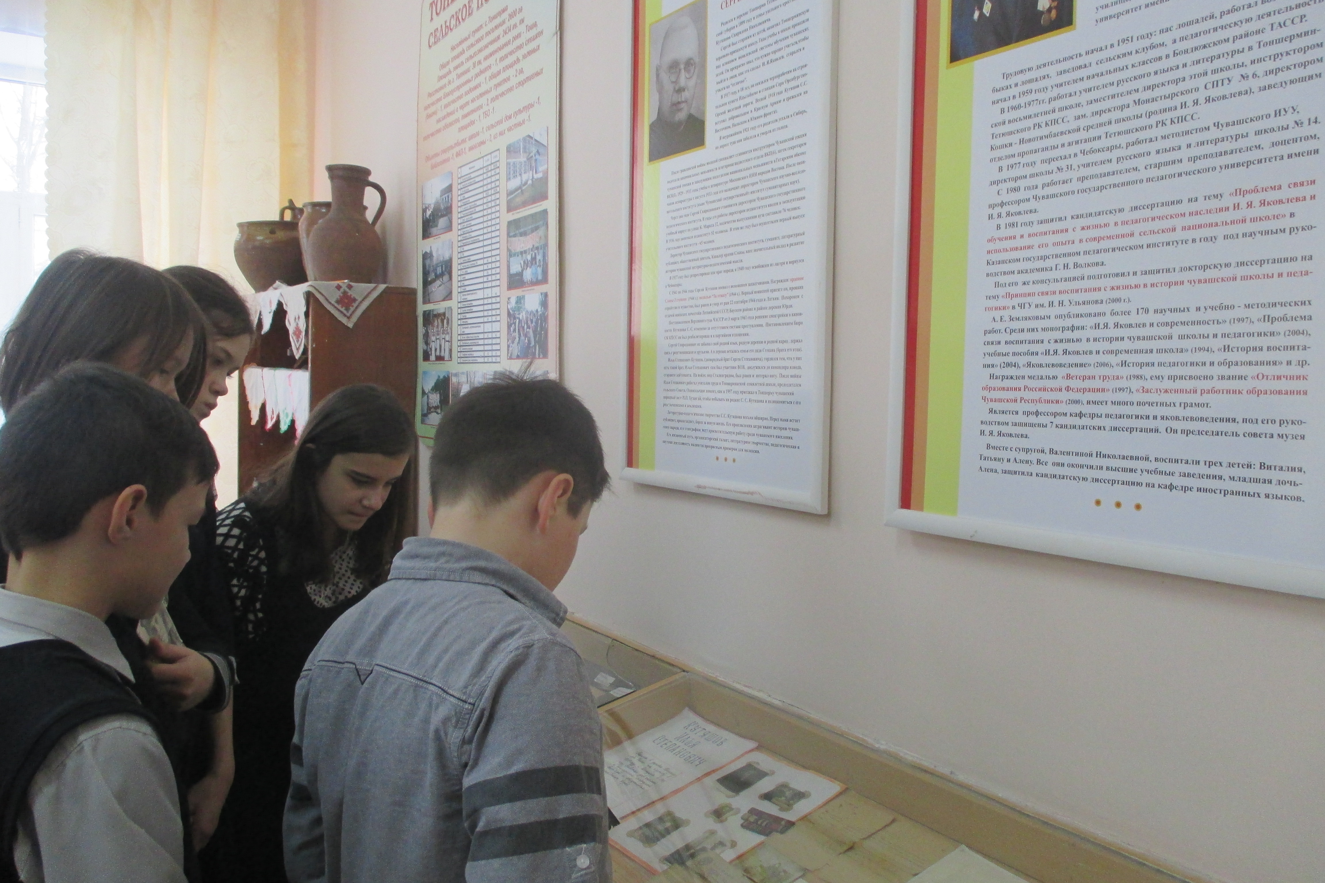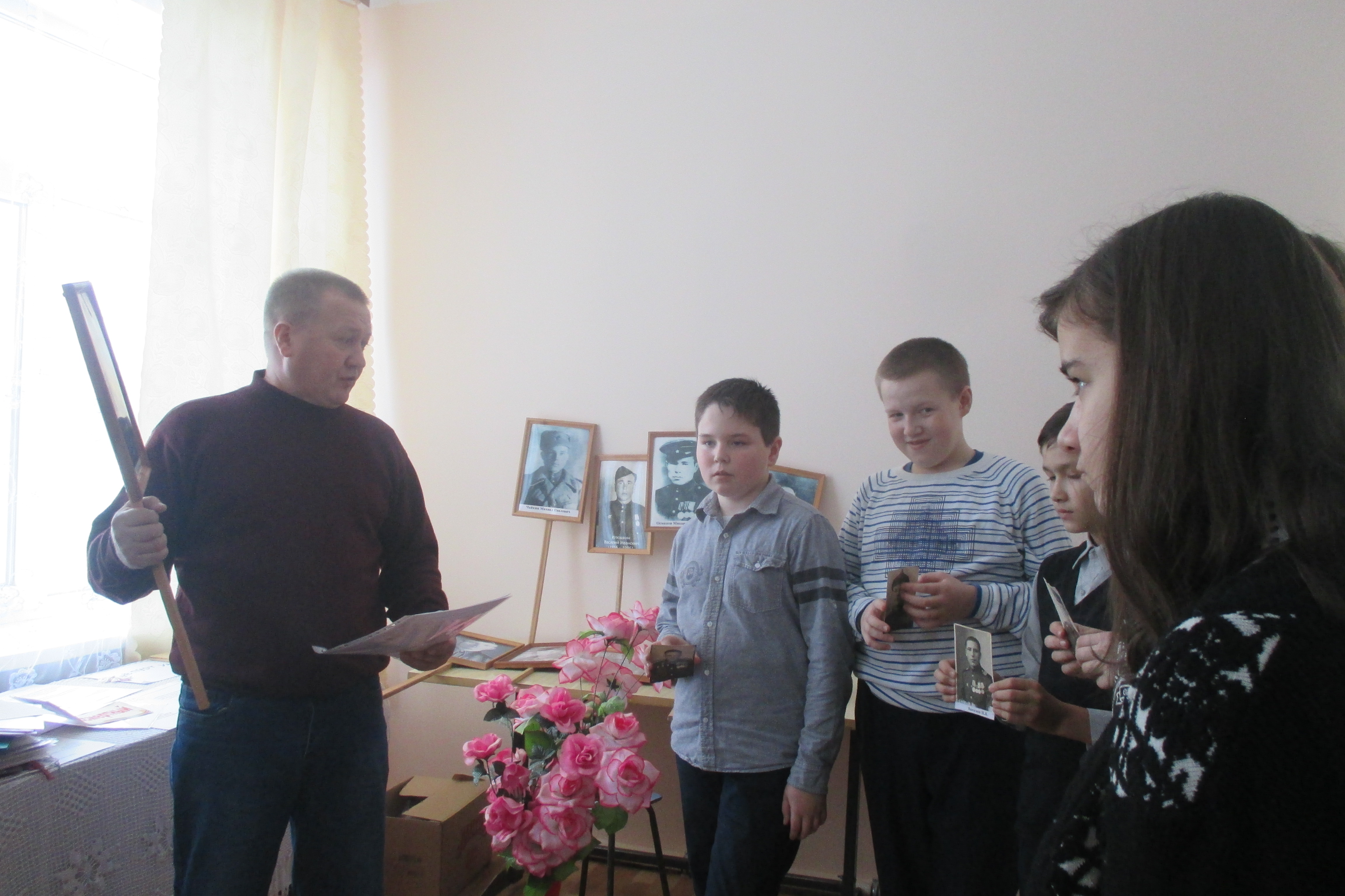 10 декабря учитель истории Тихонов В.Н. провел музейный урок «Гордимся славою героев». Он рассказал о героических поступках, которые совершили односельчане во время Великой Отечественной войны. Учащиеся ознакомились архивными документами о награждении некоторых участников войны, таких как Артемьев Сергей Яковлевич(у него Орден Отечественной войны II степени, 2 Ордена Красной Звезды, медаль «За отвагу»), Фуражкин Николай Александрович (награжден Орденом Отечественной войны II степени, медалями «За отвагу»). Учащиеся были заинтересованы героическим прошлым земляков.