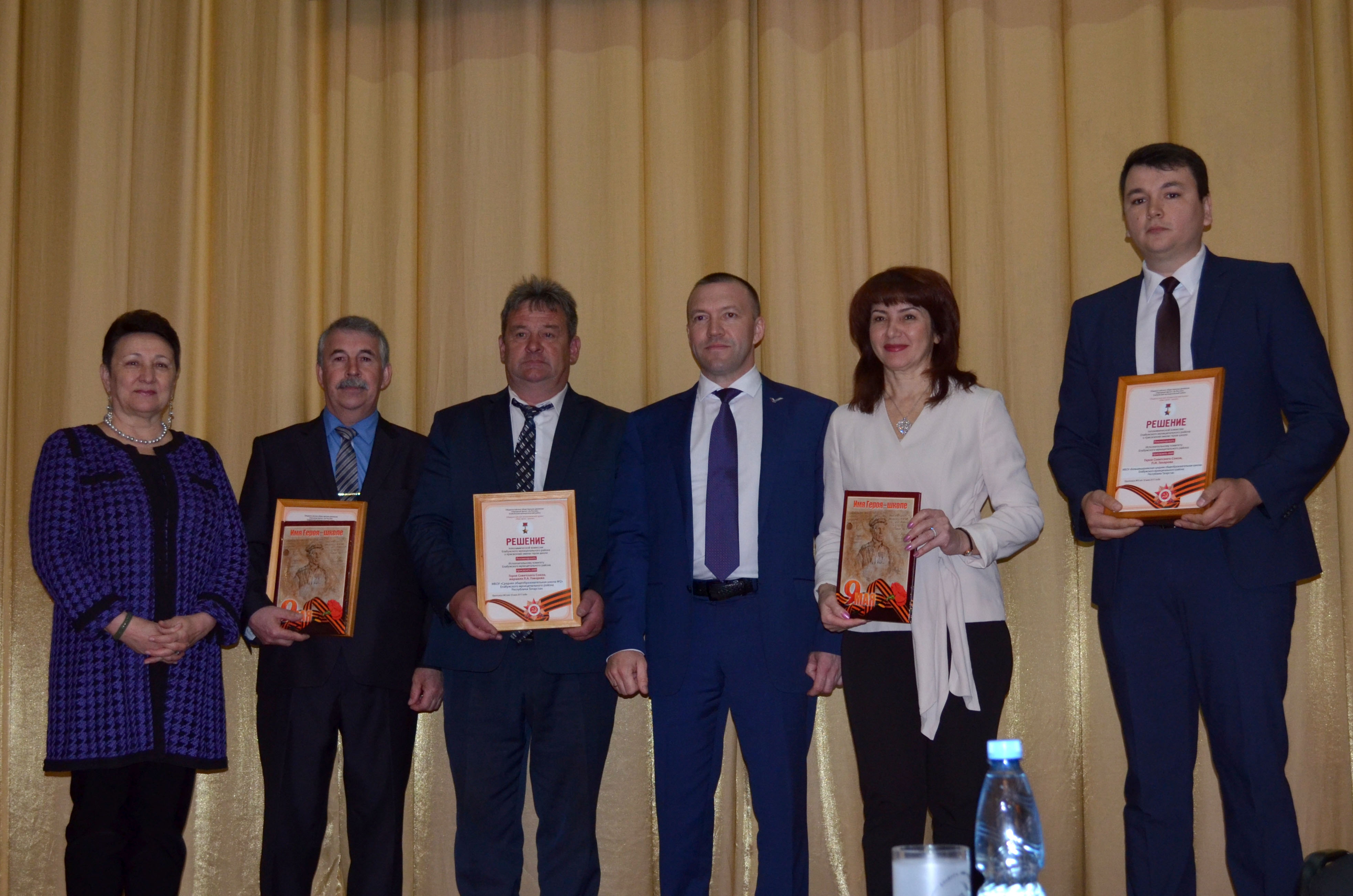 Ринат Фазылов рассказал, что по инициативе ОНФ с 2014 года в стране проходит акция «Имя героя – школе». С того времени нескольким школам Татарстана присвоены имена героев Великой Отечественной войны. Вчера этот список пополнился ещё тремя учебными заведениями. По словам Зульфии Сунгатуллиной, на проходившей накануне топонимической комиссии было рекомендовано присвоить имя маршала, Героя Советского Союза Л.А. Говорова елабужской школе № 2, имя Героя Советского Союза П.С. Сафронова Поспеловской средней школе ЕМР, а имя полного кавалера ордена Славы П.И. Захарова Большешурнякской средней школе ЕМР. В день проведения конференции Исполнительный комитет Елабужского района подписал постановления о присвоении имен героев школам.