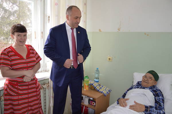 Глава Азнакавского муниципального района посетил участников ВОВ в больнице и ознакомился с ходом ремонтных работ палат для ветеранов ВОВ