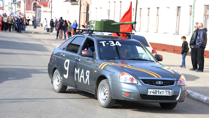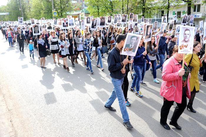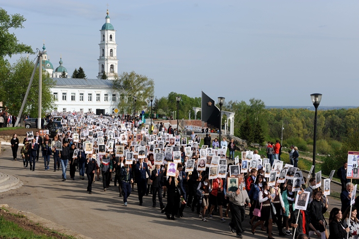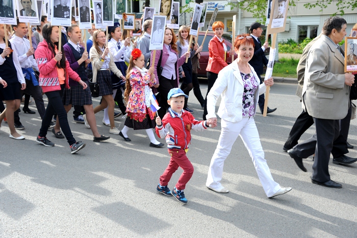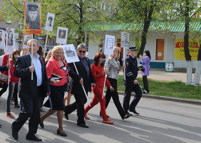 Рядом с мэром встали другие руководители, вслед за ними пошли организованные группы от предприятий и учреждений города. Всего в шествии принимало участие около 2500 елабужан. Почти каждый из них нес в руках портрет участника Великой Отечественной войны, ветерана трудового фронта.