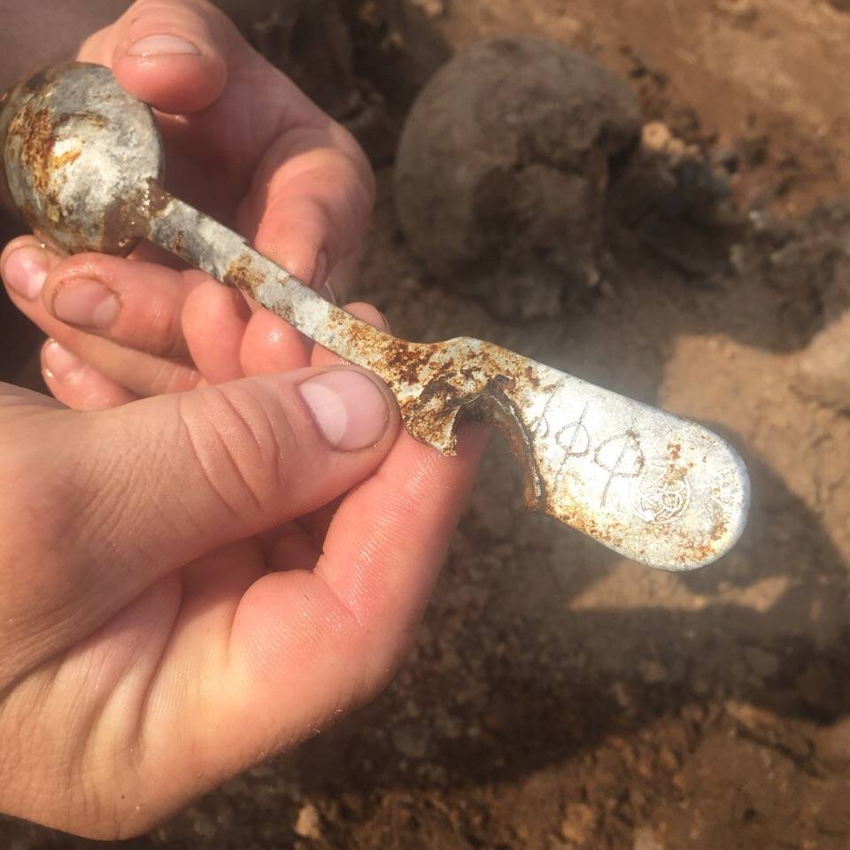 На фото показана ложка одного из бойцов с инициалами «Ф.Ф.Ф.»