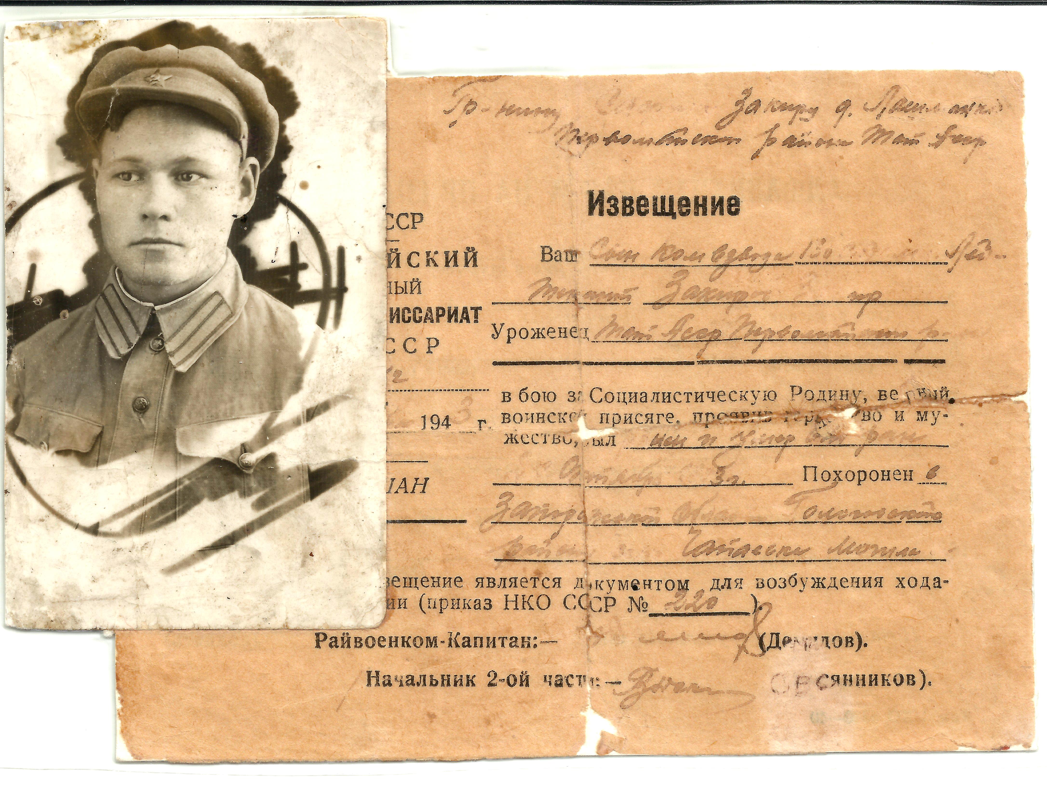 Извещение о смерти. (Закиров Шакир Закирович. Первомайский (Черемшанский) район, с. Лашманка)