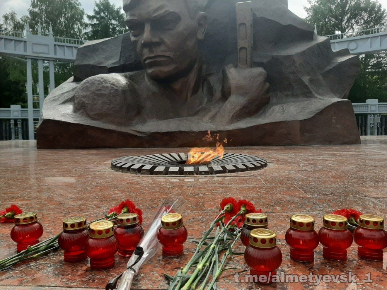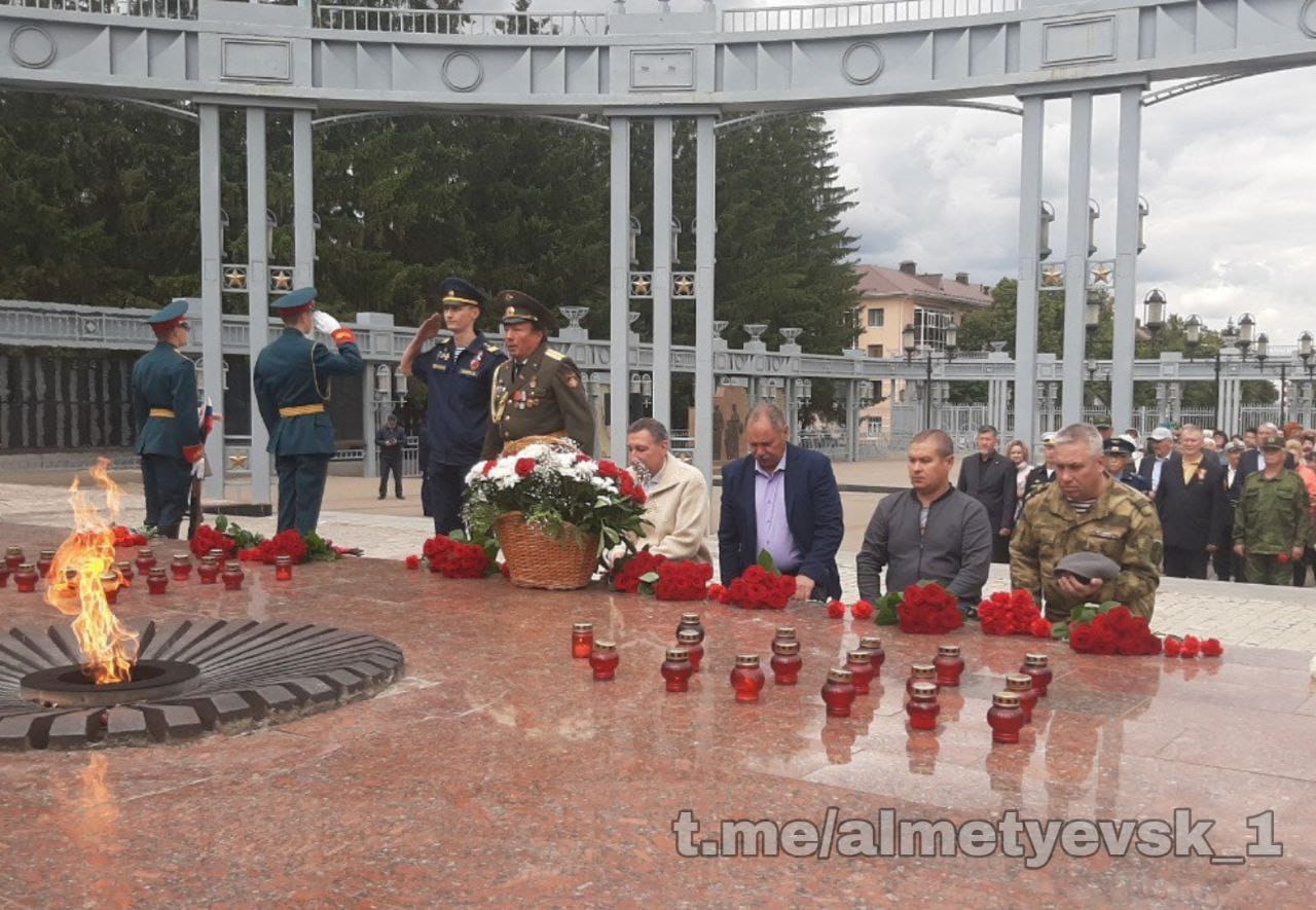 Многие альметьевцы, в том числе учащиеся и работники организаций, пенсионеры и представители исполкома пришли к мемориалу "Вечный огонь". Они возложили цветы к памятнику и оставили там зажжённые свечи.