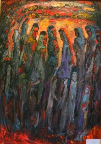 Предлагаем вам познакомиться с картинами, посвященными героической тематике, из фондов Набережночелнинской картинной галереи: «Лето 1941 года», «Ожидание», «9 Мая 2009 года». Полотна выполнил М.Ш. Хазиев, Народный художник Республики Татарстан в 2010 г., в технике масляной живописи. При тщательном рассмотрении картин, осознаешь, что они объединены темой, размерами, техникой исполнения и, что самое важное, имеют четко продуманное цветовое решение, которое, по праву позволяет назвать работы триптихом.