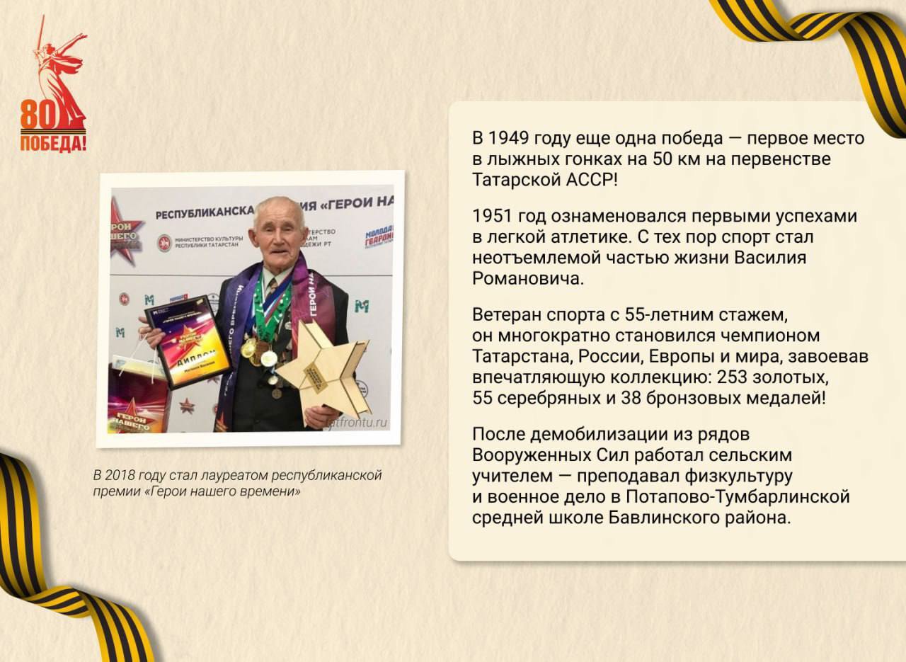 Василий Романович – ветеран Великой Отечественной войны, который прошел через две войны и ранение, но не только выжил, но и достиг невероятных успехов в спорте, став многократным чемпионом СССР, России, Европы и мира.