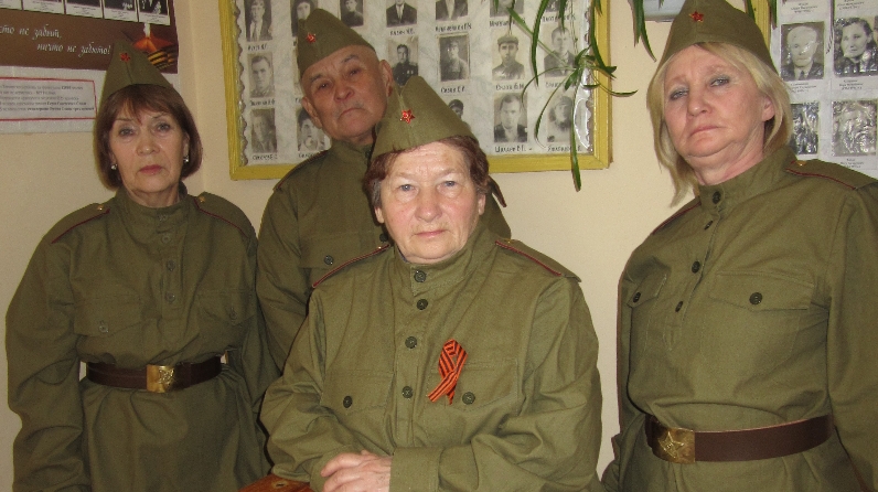Песни военных лет…Они оставлены нам на вечную память. Они сражались вместе с солдатами, были с ними в короткие часы отдыха, звали на подвиг и прославляли его. Песни, созданные в то суровое военное время, пели все: и солдаты, и те, кто трудился в тылу. Люди черпали в песнях душевные силы и оптимизм. Каждая фронтовая песня имеет свою интересную и часто захватывающую историю. Ведущая рассказала об истории создания песен «Священная война», «Катюша», «Землянка», «Синий платочек», «Огонек», «На Мамаевом кургане тишина», «День Победа», которые прозвучали в исполнении Курмышкиной М.Н., Старостиной Н.З. и Щукиной Н.С., аккомпанировал гармонист Старостин В.С.