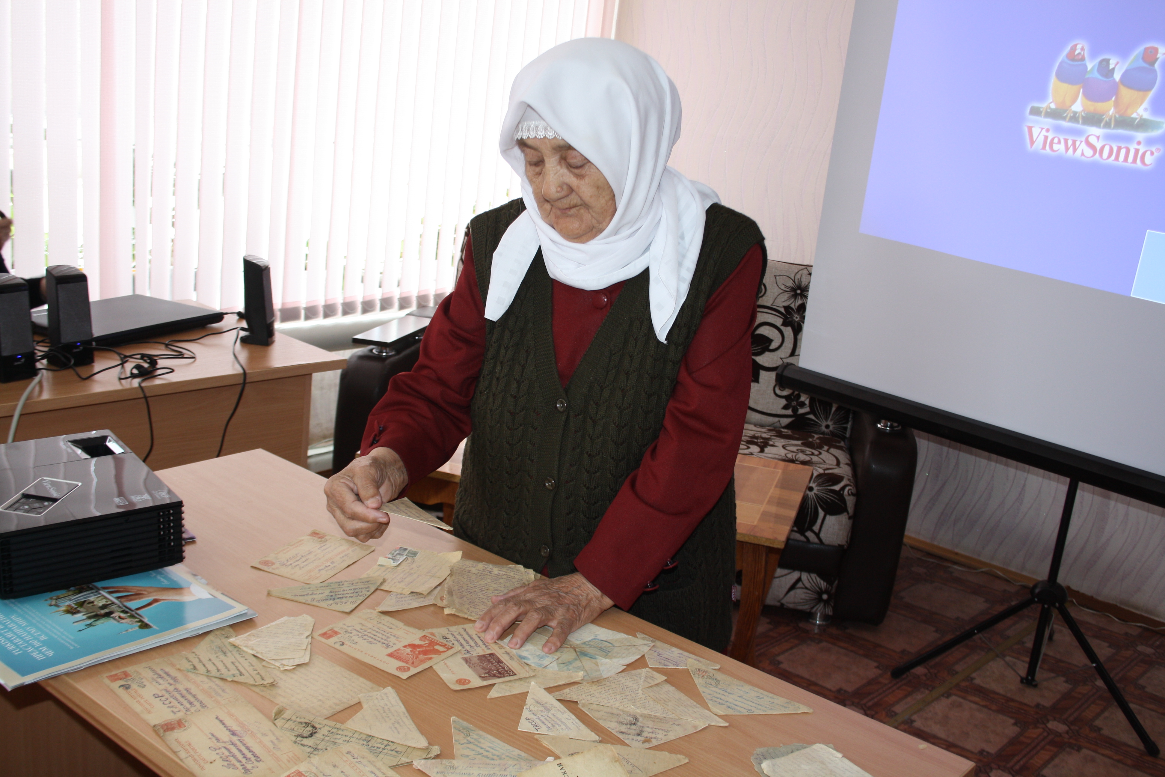 В читальном зале центральной библиотеки в преддверии 70 летия Великой Победы прошел литературно- музыкальный вечер по солдатским письмам нашего земляка Миннегалима Хасаншина. В качестве ведущих мероприятия выступили заведующая читальным залом Шамсутдинова Р. и заведующая абонементом центральной библиотеки Гарифуллина Р. На вечер были приглашены учащиеся 9 класса МБОУ «Сармановская гимназия» (классный руководитель Матзянова Р.М); родная сестра погибшего солдата Тагзима –апа. Она поделилась своими воспоминаниями, рассказала об основных фактах его биографии. На вечере были прослушаны песни, стихи, была подготовлена книжная выставка. В конце мероприятия учащиеся ознакомились с письмами солдата, поделились впечатлениями.