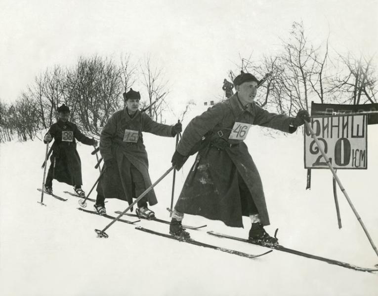 Еще во время войны зимой 1939—1940 гг. на фронте действовали специальные лыжные подразделения. Исключительное мужество и геройство проявили отряды добровольцев, сформированные из студентов и преподавателей Ленинградского института физической культуры. Эти отряды наносили врагу большой урон, выполняли ответственнейшие поручения командования. За отвагу и мужество в боях большая группа лыжников была награждена орденами и медалями, а известному лыжнику — чемпиону страны 1939 г. Владимиру Мягкову первому из советских спортсменов было присвоено звание Героя Советского Союза. В. Мягков погиб в бою смертью храбрых.