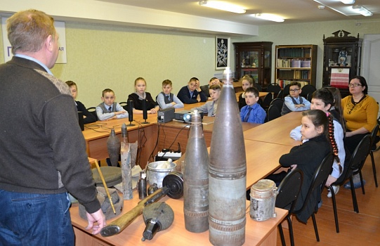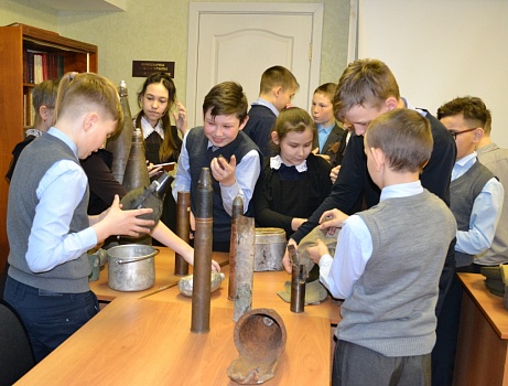 5 апреля 2019 г. Музей родного края посетила группа учеников 5Б класса Алексеевской школы №2, для которых было проведено комплексное мероприятие (лекция-фондовый показ) в рамках республиканской акции "Музейная весна Татарстана 2019" по направлению "Я помню, я горжусь!" - подготовка к празднованию 75-летия Великой Победы. Основной темой занятия была военная биография Героя Советского Союза, нашего земляка, Ивана Егоровича Кочнева. На примере подвигов героя дети узнали много нового и интересного об истории Великой Отечественной войны, а также смогли своими руками потрогать подлинные предметы из собрания военно-исторического клуба "Звезда" пос. Алексеевское.