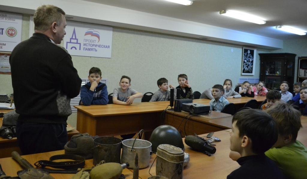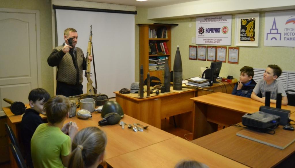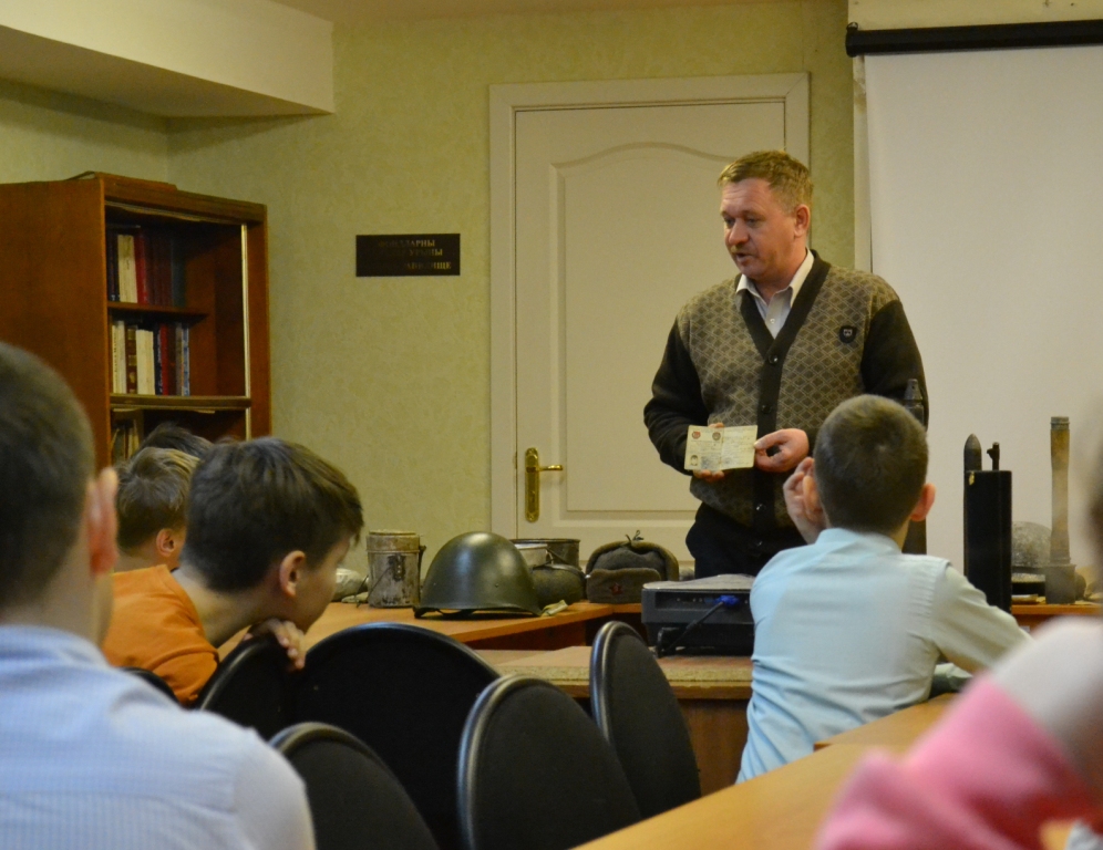 15 марта 2019 г. в Музее родного края им. В.И. Абрамова в рамках Республиканского Марша Памяти прошло совместное комплексное музейное мероприятие на военно-историческую тему "Аты-баты, шли солдаты" для учащихся 4 класса Алексеевской школы №1. Дети узнали много интересного об истории Великой Отечественной войны, смогли посмотреть и потрогать подлинные предметы той эпохи из собрания военно-исторического клуба "Звезда" Алексеевского Центра детского творчества, среди них многочисленные поисковые находки. При проведении мероприятия также использовался фонд музея - подлинные документы военной поры: красноармейские и краснофлотские книжки, комсомольский билет ветерана-фронтовика.