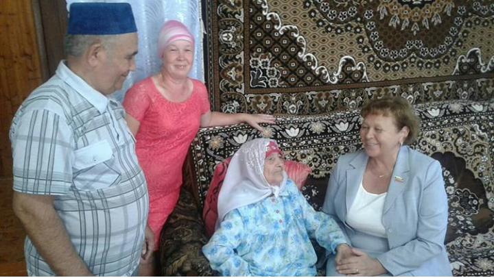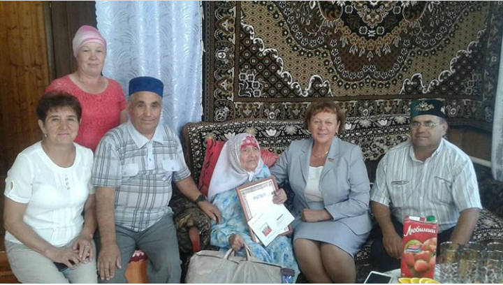 Шарафиева Гульюзум Абдулловна из деревни Чишмабаш Кукморского района отметила свой 90 летний юбилей. Юбиляршу поздравили Депутат Государственного Совета РТ пятого созыва, заместитель председателя Государственного Совета РТ РатниковаРиммаАтласовна и заместитель Главы Кукморского района КаримуллинаРавияАбдулловна, вручили Поздравительную открытку президента России, Благодарственное письмо главы района и памятный подарок.