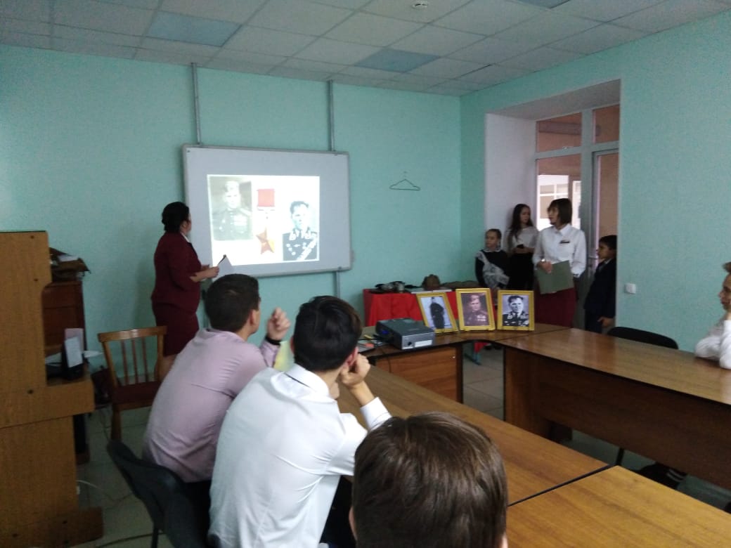 80 лет тому назад, благодаря Указу президиума ВС СССР от 16 октября 1939 года новая медаль для граждан, удостоенных высшей степени отличия-звания «Герой советского Союза» стала именоваться как медаль «Золотая Звезда»! В память об этой дате, о наших земляках – Героях Советского Союза в ГАПОУ «Заинский политехнический колледж» сотрудники музея провели «Вахту памяти» мероприятие «Не смолкнет слава тех великих лет». Экспонаты военной поры, выступления ребят с музейного кружка помогли присутствующим прочувствовать атмосферу военных лет, поближе познакомиться с биографией героев, ребята узнали о жизни земляков после войны.