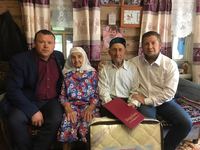 С 90 летним юбилеем Зияфатова Халиуллу Зияфатулловича поздравили руководитель Исполнительного комитета Камско-Устьинского муниципального района Республики Татарстан Алмаз Альбертович Насыров и Глава Балтачевского сельского поселения Динар Имамутдинович Мухаммадуллин.