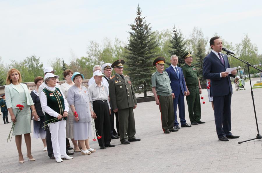 «Без этой Великой Победы, несомненно, не было бы сегодняшней процветающей Европы и современного мироустройства, - объявил в своей речи Ильдар Халиков. – Мы должны всегда помнить об этом. 700 тысяч наших земляков ушли на фронт, и половина из них не вернулись с полей сражений». Выразил бесконечную признательность Премьер и тем, кто в годы войны трудился на благо советской армии – на заводах, в колхозах, в госпиталях. После Премьер-министра слово взял Герой Советского Союза Борис Кузнецов. Ветеран очень эмоционально и энергично поздравил собравшихся с 74-летием памятной даты и с Великой Победой, которая была в итоге одержана. По традиции память павших почтили минутой молчания, а в небо выпустили воздушные шарики – рыжие и черные, по цветам георгиевской ленты. Наступила кульминация мероприятия – возложение цветов к Вечному огню.