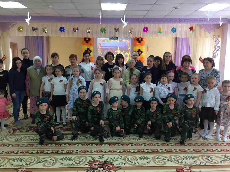 На мероприятие, посвященное Дню Победы, были приглашены ветераны - дети войны и труженики тыла. Они со слезами на глазах смотрели музыкально-литературную композицию «Поклонимся великим тем годам», которую подготовили для дорогих гостей воспитанники старших и подготовительных групп.