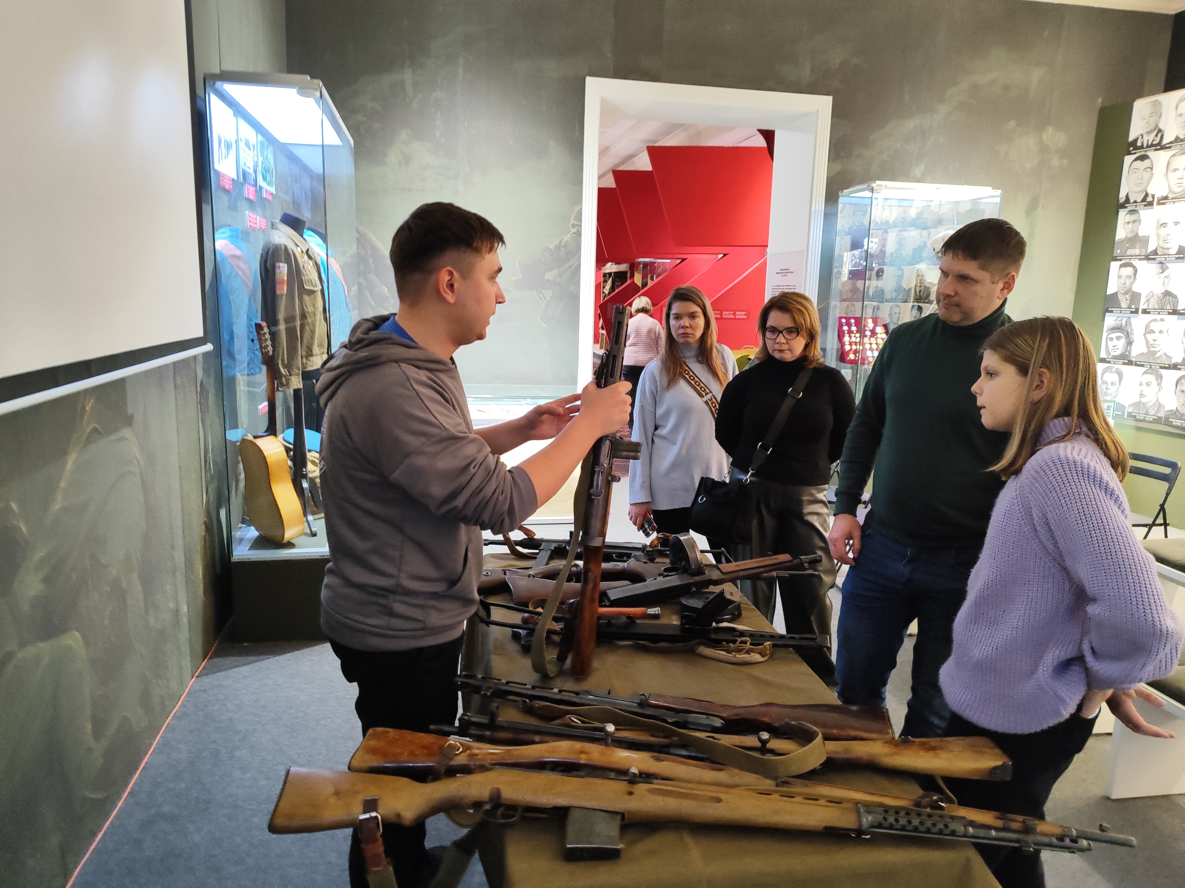 Также, в рамках «Ночи искусств» сотрудники Музея-мемориала провели мероприятие и показ оружия времён Великой Отечественной войны, в интерьерах музея юные посетительницы музея с удовольствием фотографировались с нашим заведующим Александром Александровым. Роман Тургенев рассказал об оружие, которое можно было не только посмотреть, но и взять в руки, и конечно же сфотографироваться!