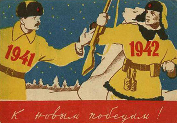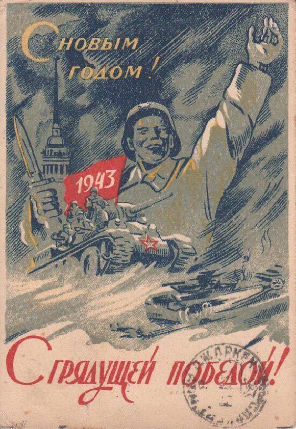 И также как и в мирное время люди слали друг другу новогодние открытки с поздравлениями. Но война накладывала свой отпечаток. Главное пожелание - это Победа над врагом и скорейшее возвращение домой к своим семьям.