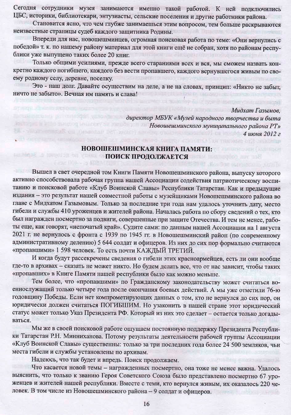 НОВОШЕШМИНСКАЯ КНИГА ПАМЯТИ: ПОИСК ПРОДОЛЖАЕТСЯ