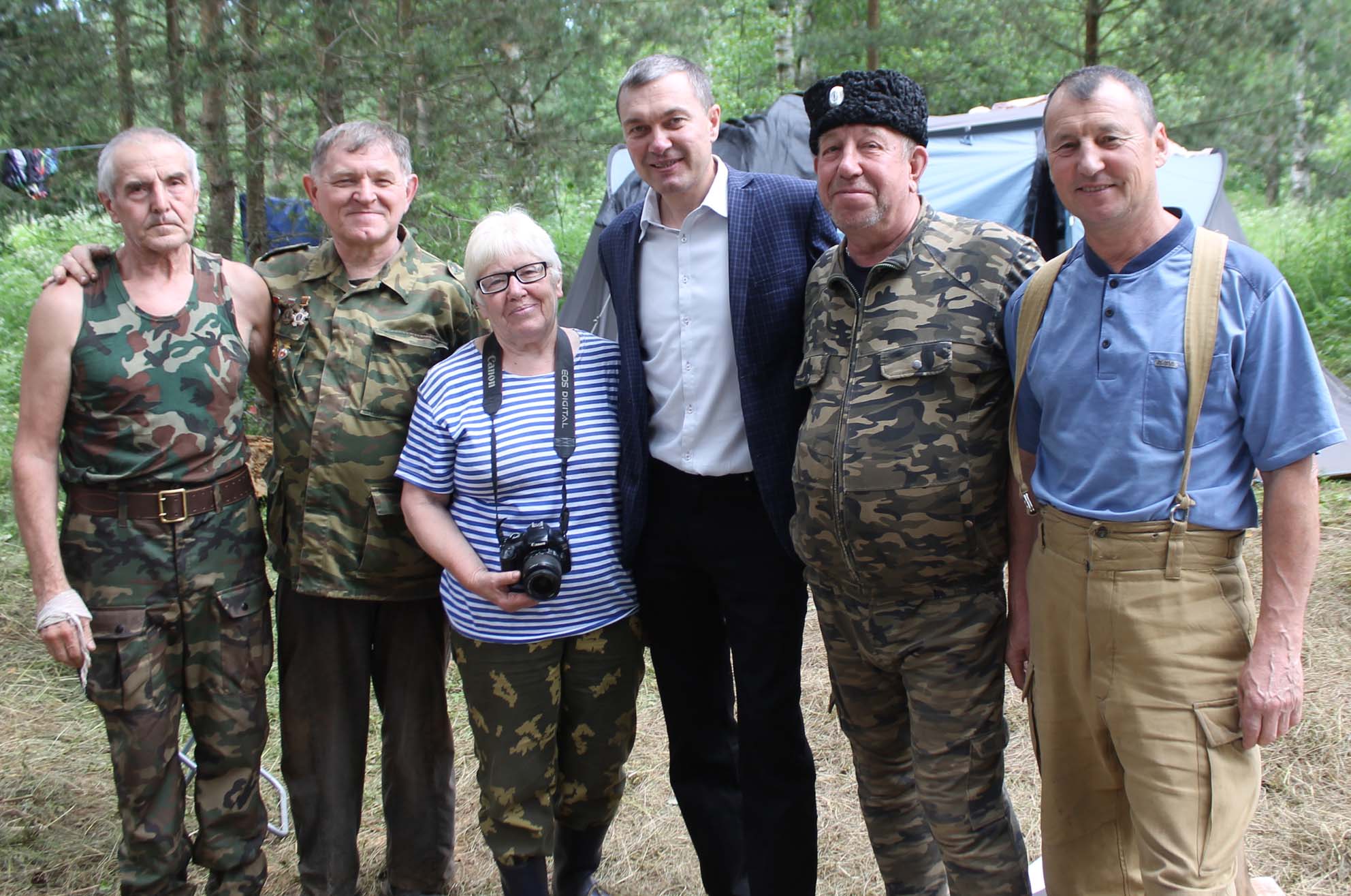 В гости к ребятам приезжал полномочный представитель Татарстана в Ленинградской области Ренат Валиуллин. Он интересовался условиями проживания ребят, поздравил с находками, пожелал удачи. Пообещал поисковикам, пожелавшим учиться в питерских вузах всяческую поддержку! Со многими из отряда посол знаком лично и потому встреча была теплой и непринужденной. Михаил Черепанов проводил его и к месту нашей работы в лесу.