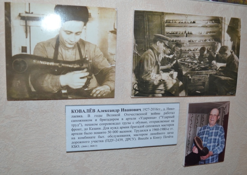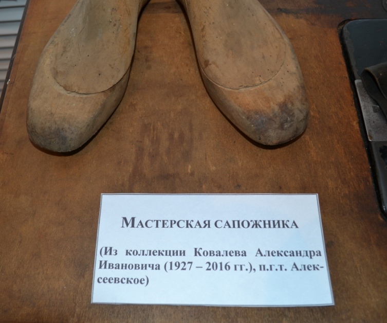 Сегодня сотрудники Музей родного края завершили оформление нового комплекса в экспозиции зала №3 ("История края в ХХ в."), посвящённого труженику тыла А.И. Ковалёву, которая называется "Мастерская сапожника". Семья Ковалёвых передала в дар музею личные вещи, инструменты и оборудование, на которых работал ныне покойный Александр Иванович Ковалёв в годы войны изготавливая и ремонтируя обувь для нужд Красной Армии. Авторами оформления комплекса стали работники отдела фондов Л.И. Абрамова и И.Н. Галанина.
