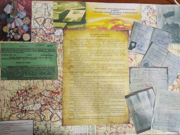Мой прадед Айсин Хасият Салахович участник Великой Отечественной Войны Центрального фронта, 1 Украинского фронта, 2.4 Украинских фронтов в составе 209 минометного полка в должности минометчика с апреля 1942 года по май 1945 года.