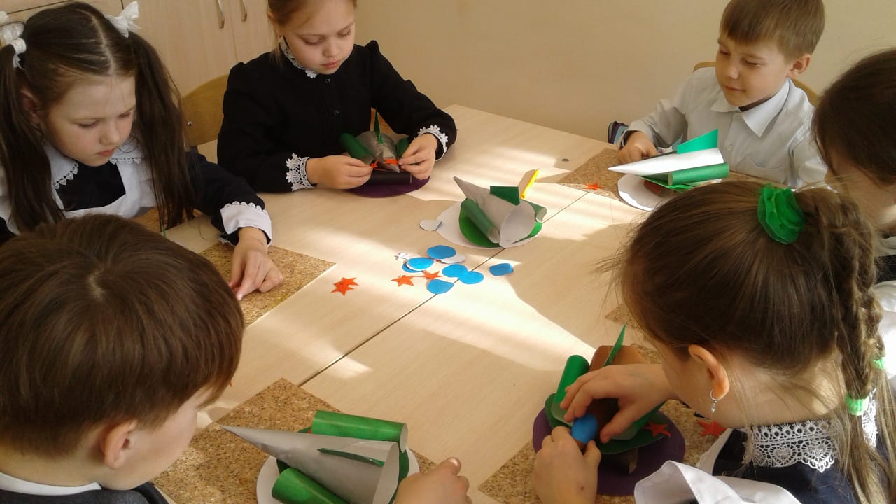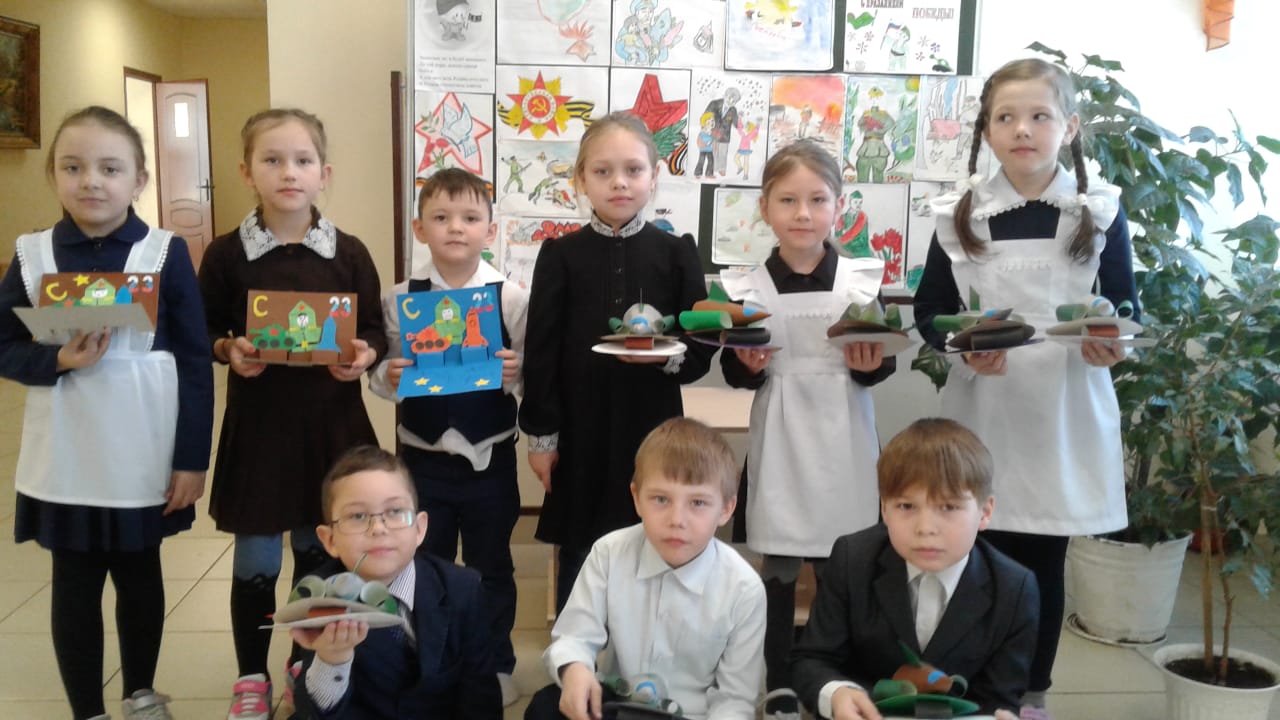 Учащиеся начальных классов Староильмовской средней школы, сделали поделки на военную тему. На мероприятии "День Защитника Отечества", они их подарят папам и дедушкам.