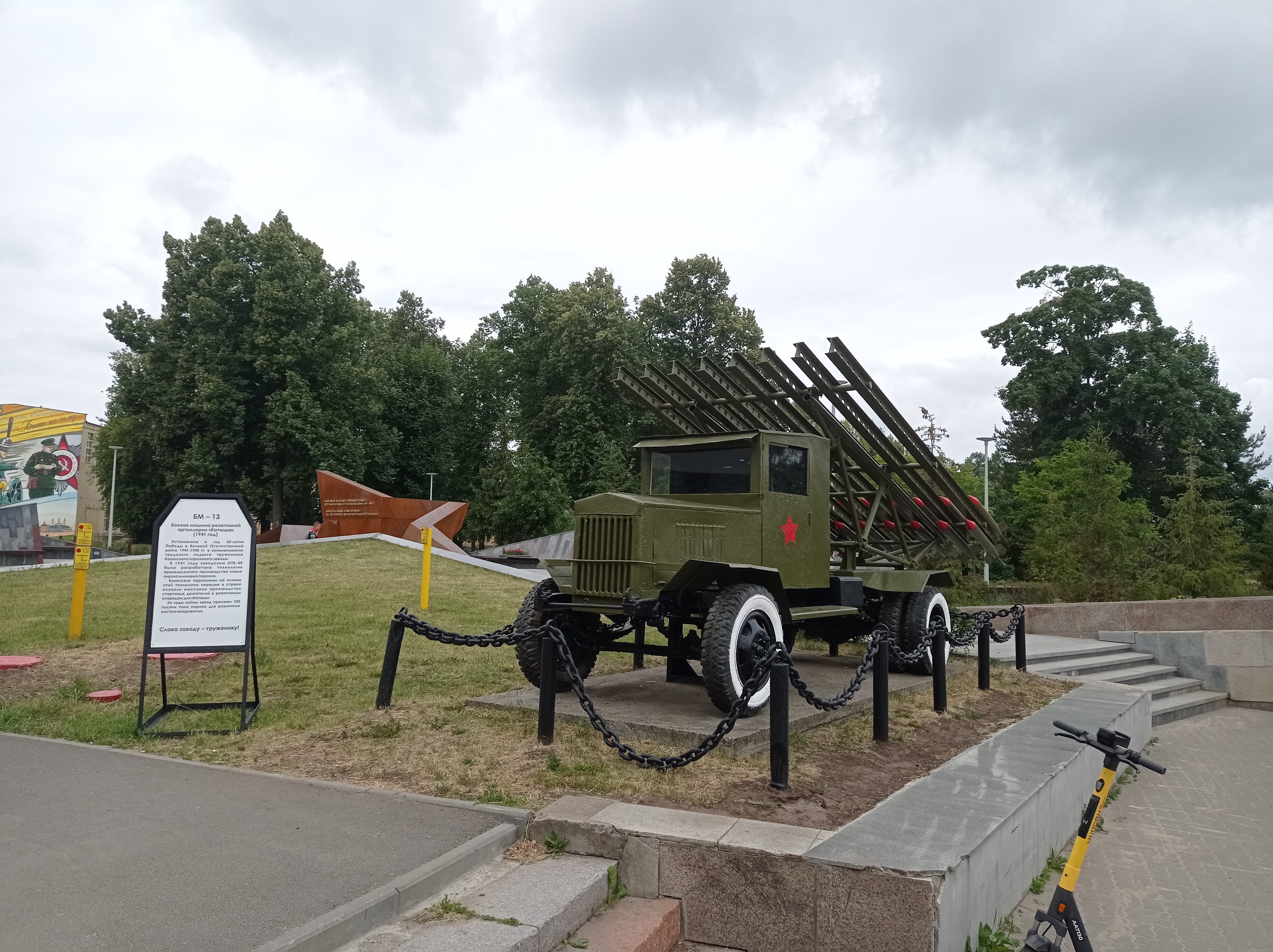 Архитектурный ансамбль одного из центральных парков Кировского района дополняет БМ-13 – боевая машина реактивной артиллерии «Катюша» образца 1941 года. Которая была установлена в год 60-летия Победы в Великой Отечественной войне 1941-1945 гг. в ознаменование трудового подвига тружеников Казанского порохового завода.
