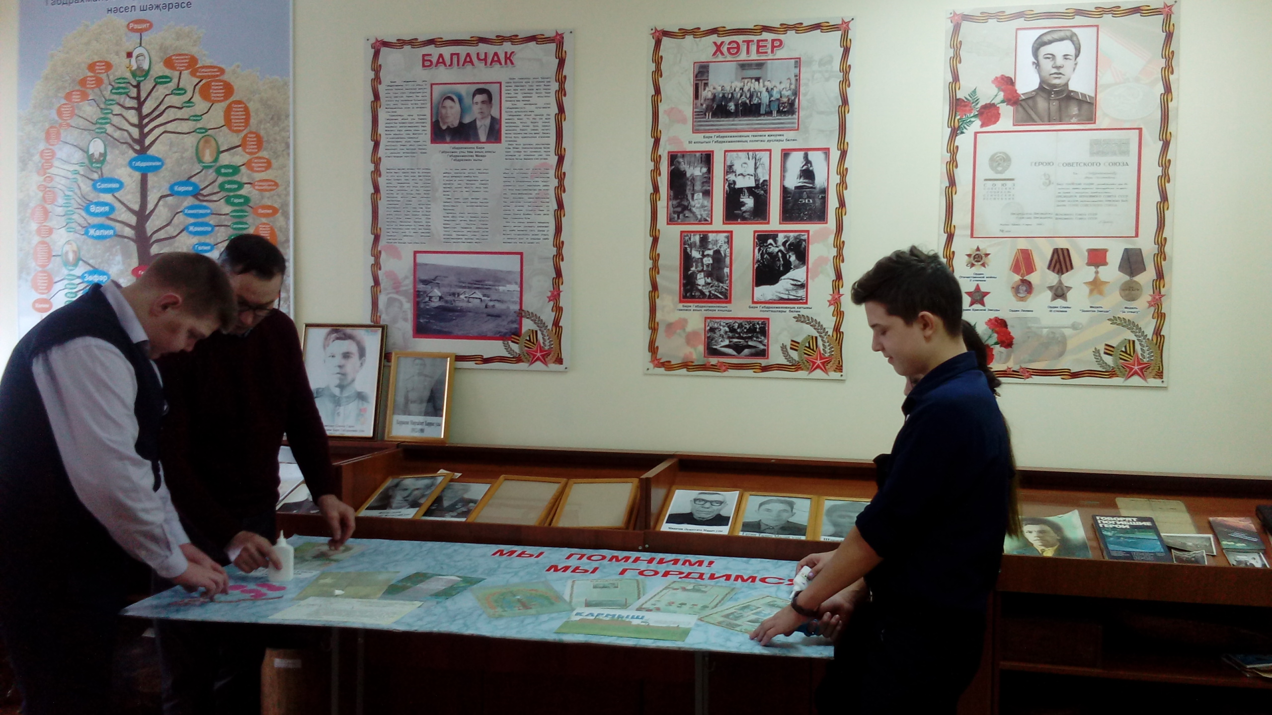 В школьном музее МБОУ " Карамышевская ООШ им. Бари Габдрахманова" в связи с подготовкой к празднованию 75 летия победы Великой Отечественной войны начата работа по обновлению музейных уголков Боевой славы.Учащимися был обновлен стенд ,посвещенный Герою Советского Союза , нашему земляку,Бари Габдрахмановичу Габдрахманову.Наш земляк,известный журналист -писатель Тазиев Дамир Назирович готовит книгу о фронтовиках,погибших на полях сражений и вернувщихся с победой земляках по нашей сельской территории.Наш школьный коллектив с большим желанием помагает при сборе материалов о фронтовиках нашего села.