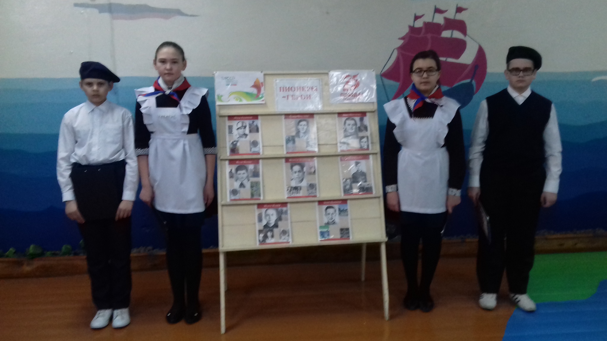 Обучающиеся вспомнили подвиги маленьких героев большой войны, которые сражались в небе, партизанских отрядах, катакомбах — Зины Портновой, Лени Голикова, Володи Дубинина, Вали Котика, Марата Казея — почтили их память минутой молчания.