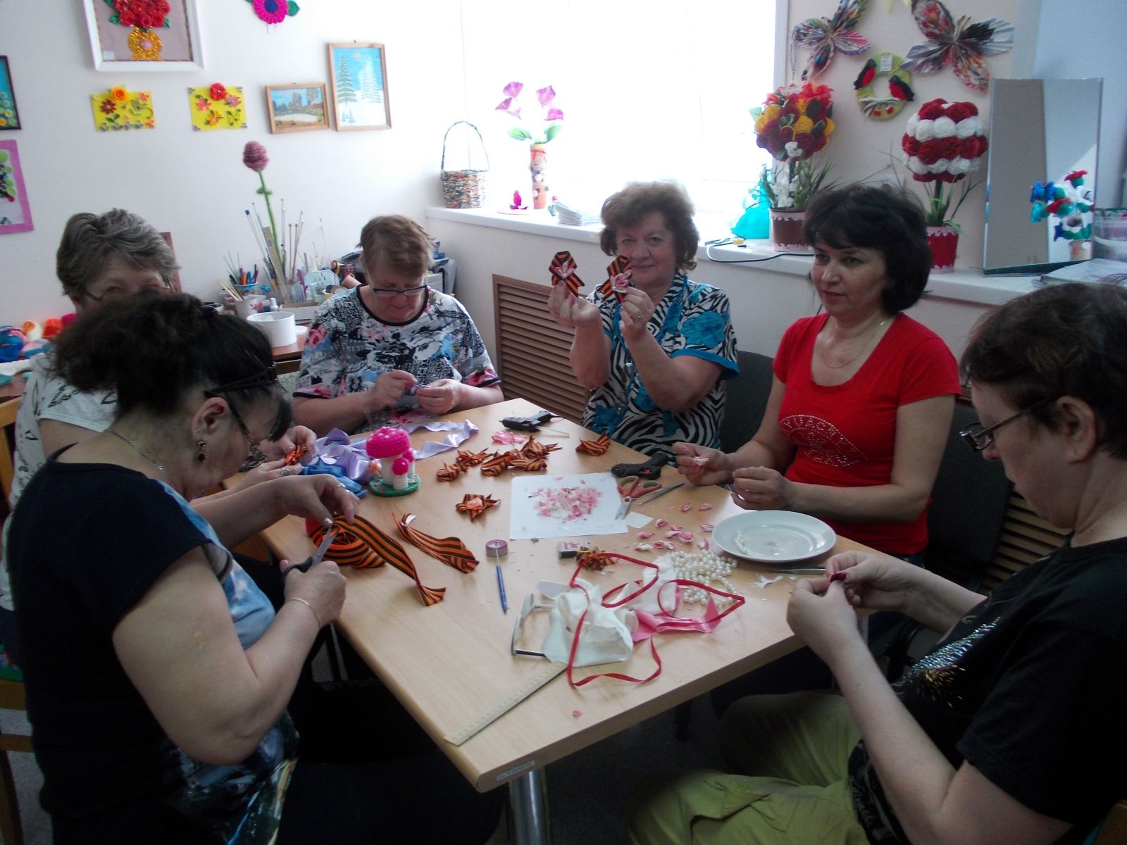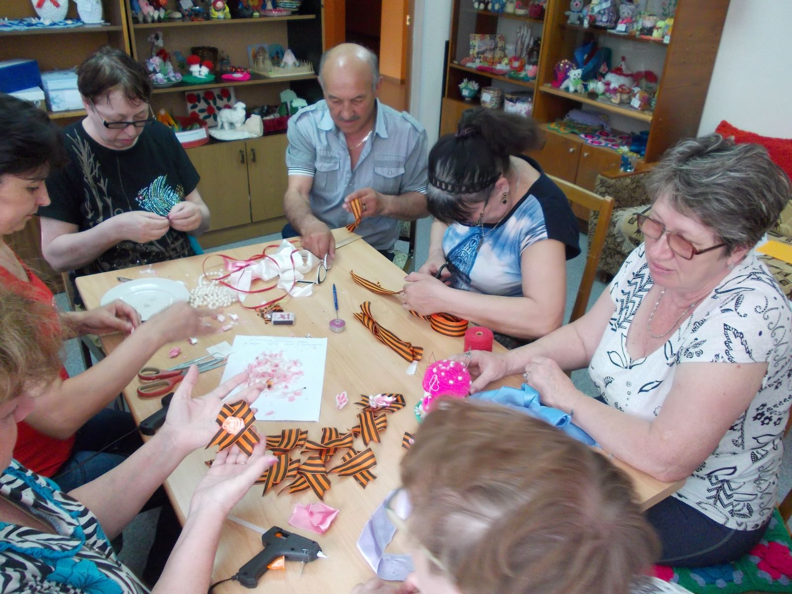В преддверии празднования 72-й годовщины Победы в социально-реабилитационном отделении центра «Омет» инструктор по труду Г.Низамова провела мастер-класс по изготовлению броши из георгиевских ленточек. Получатели социальных услу с особой ответственностью и большим энтузиазмом отнеслись к этой работе, отдали дань уважения войнам-победителям, отдавшим свои жизни за наше светлое будущее. Было сделано 36 брошей для всех пожилых и инвалидов.