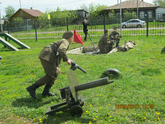Школьники и мастер военно-исторической реконструкции Свято-Авраамиевского храма Максим Волков, выступавший в роли Павла Алексеевича, постарались со всей достоверностью воспроизвести бой: звучали выстрелы, гремели гранаты, дымились подожжённые вражеские танки… Но атака «фашистов», как и в реальности, закончилась их полным разгромом, а на захваченный танк было водружено советское знамя.