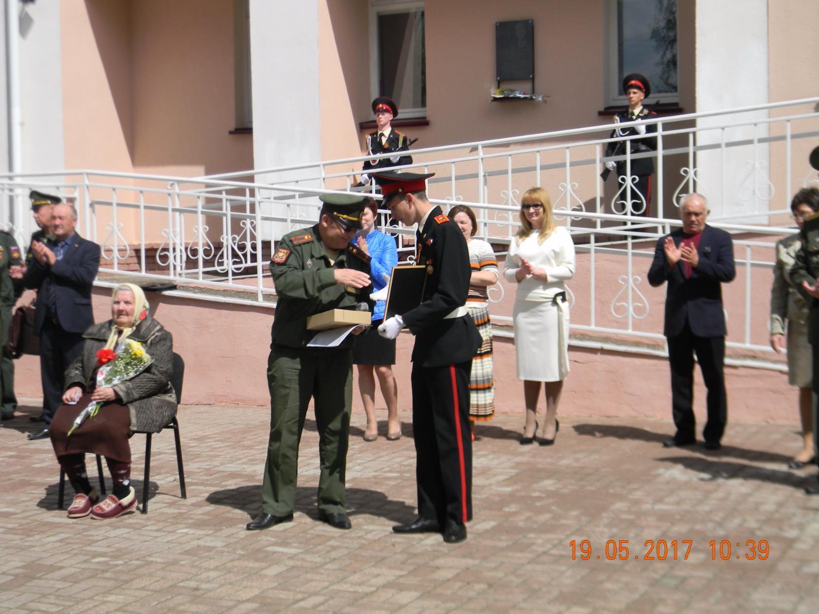 Начальник штаба военно-патриотического движения «Юнармия» Ильхам Мидхатов в награду лучшему учащемуся школы Александру Петрову вручил планшетный компьютер. Отмечен также активист школьного ученического совета «Кадетство» Василий Сбитнев.