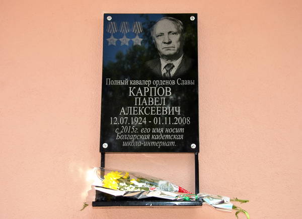 19 мая 2017 года ходе семинара в кадетской школе Болгара открыта мемориальная доска Павла Карпова, имя которой она носит.