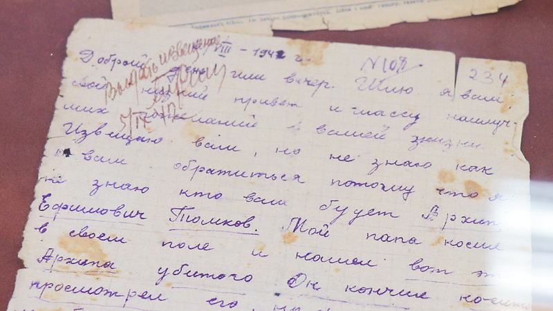 Экспозицию открыл Глава района Сафиуллов Рамис Хатыпович. Он отметил уникальность выставки, важность сохранившихся фронтовых писем для родственников погибших на войне, для истории страны в целом, и призвал каждого посетить данную экспозицию.