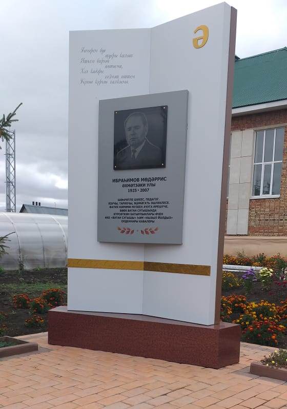 1 сентября 2020 г.в селе Миннибаево состоялась церемония открытия стелы педагогу, писателю, историку, публицисту, заслуженному работнику культуры Республики Татарстан, основателю мемориального музея им.Фатиха Карими, участнику Великой Отечественной войны Ибрагимову Мударису Ахметзакиевичу.