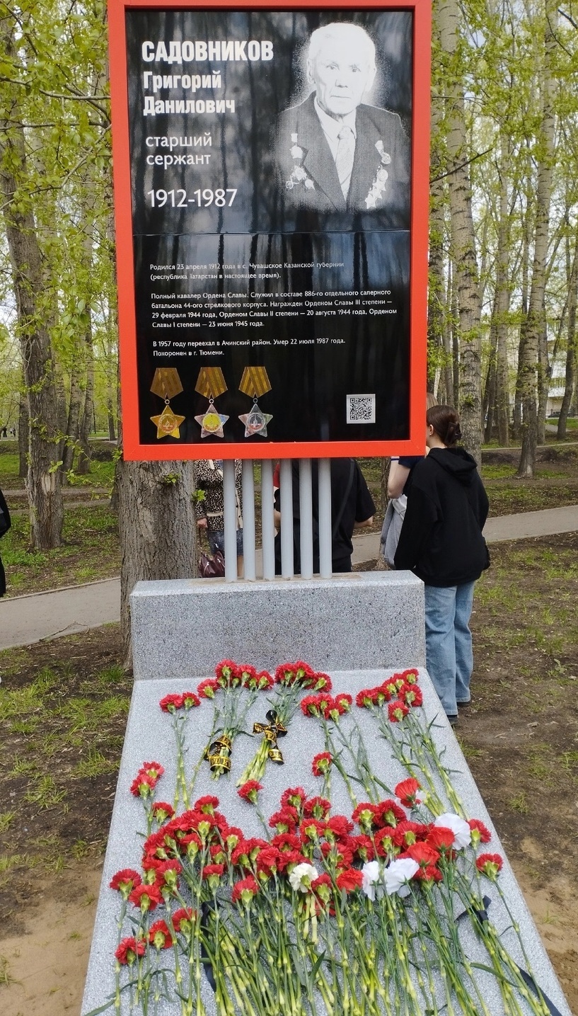 В торжественной обстановке была открыта стела: установлена в честь полного кавалера ордена Славы Григория Даниловича Садовникова.