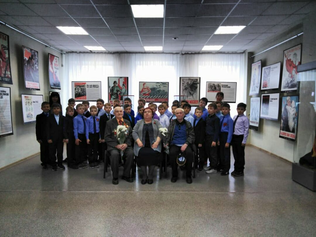 Выставку посетили учащиеся 3-го кадетского класса лицея № 9.Почетными гостями выставки стали ветеран Великой Отечественной войны Головлев Борис Алексеевич и труженик тыла Копылов Виктор Андреевич.