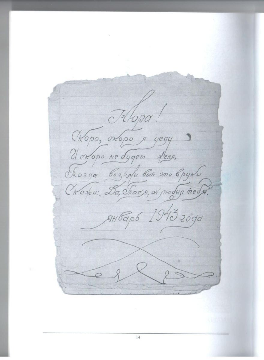 «Нюра! Скоро я уеду, и скоро не будет меня. Тогда возьми вот это в руки и скажи: «Да, Тося, он любил тебя». Под этой записью стоит дата – 31 января 1943 года, с. Новошешминск.