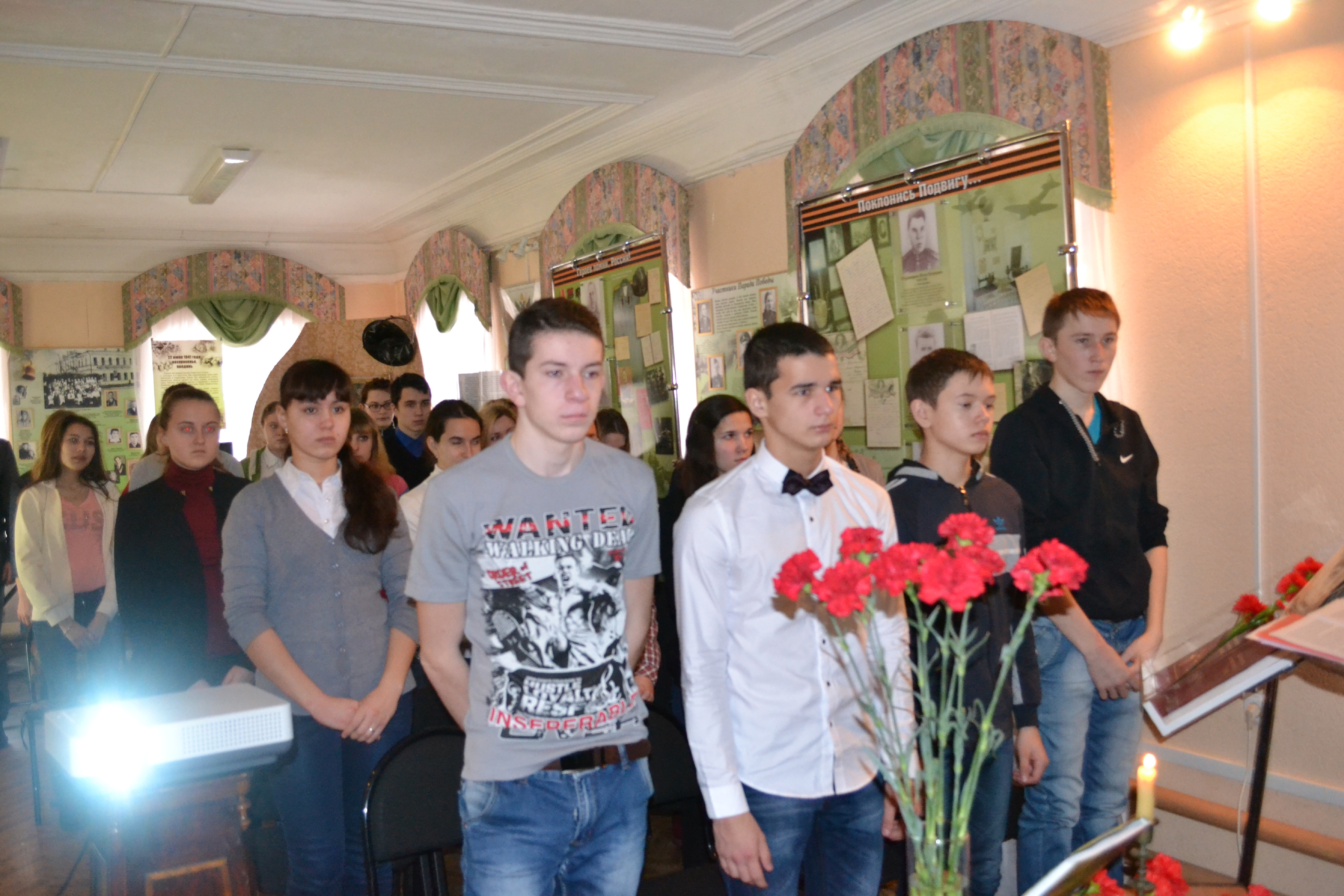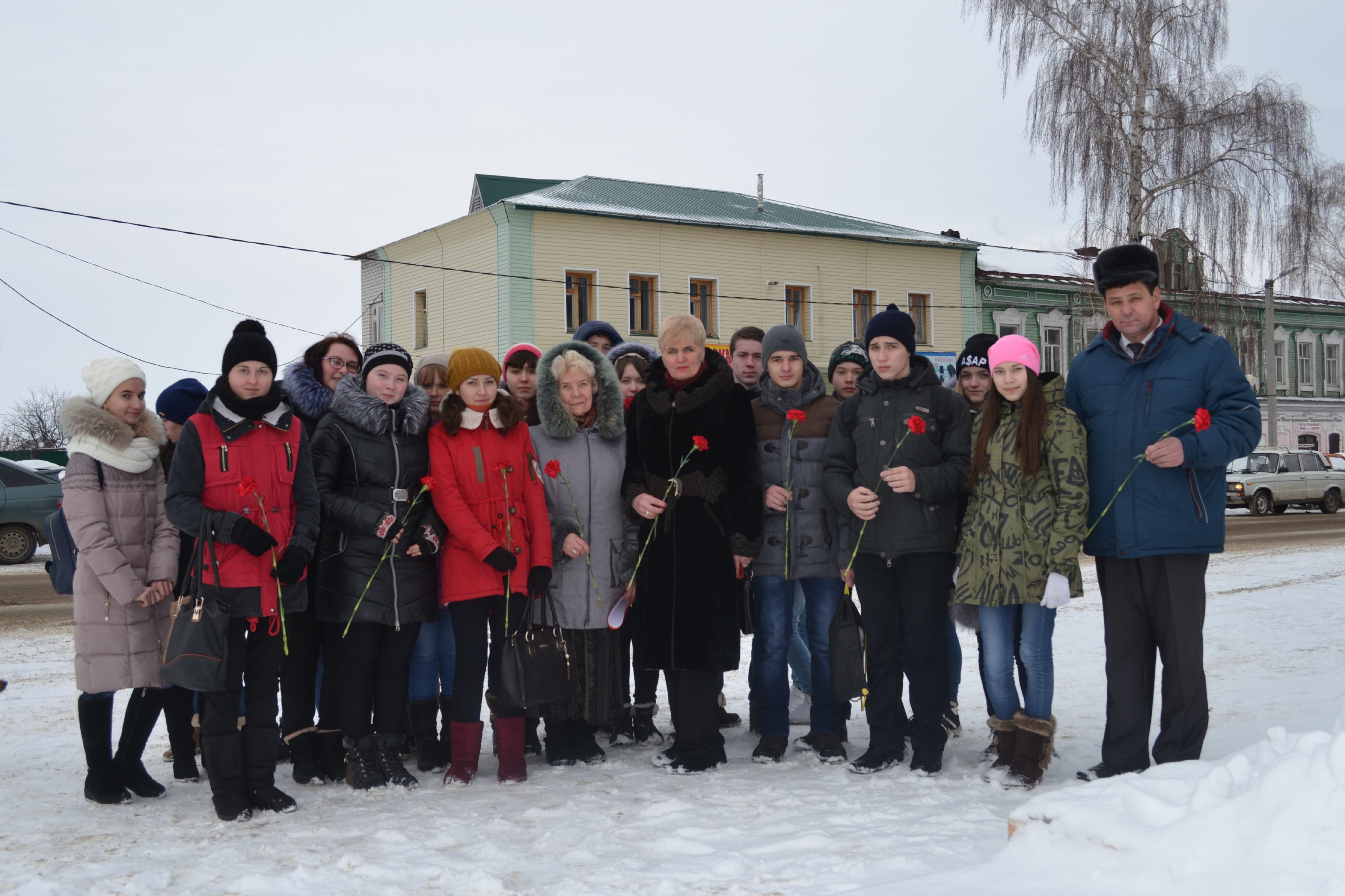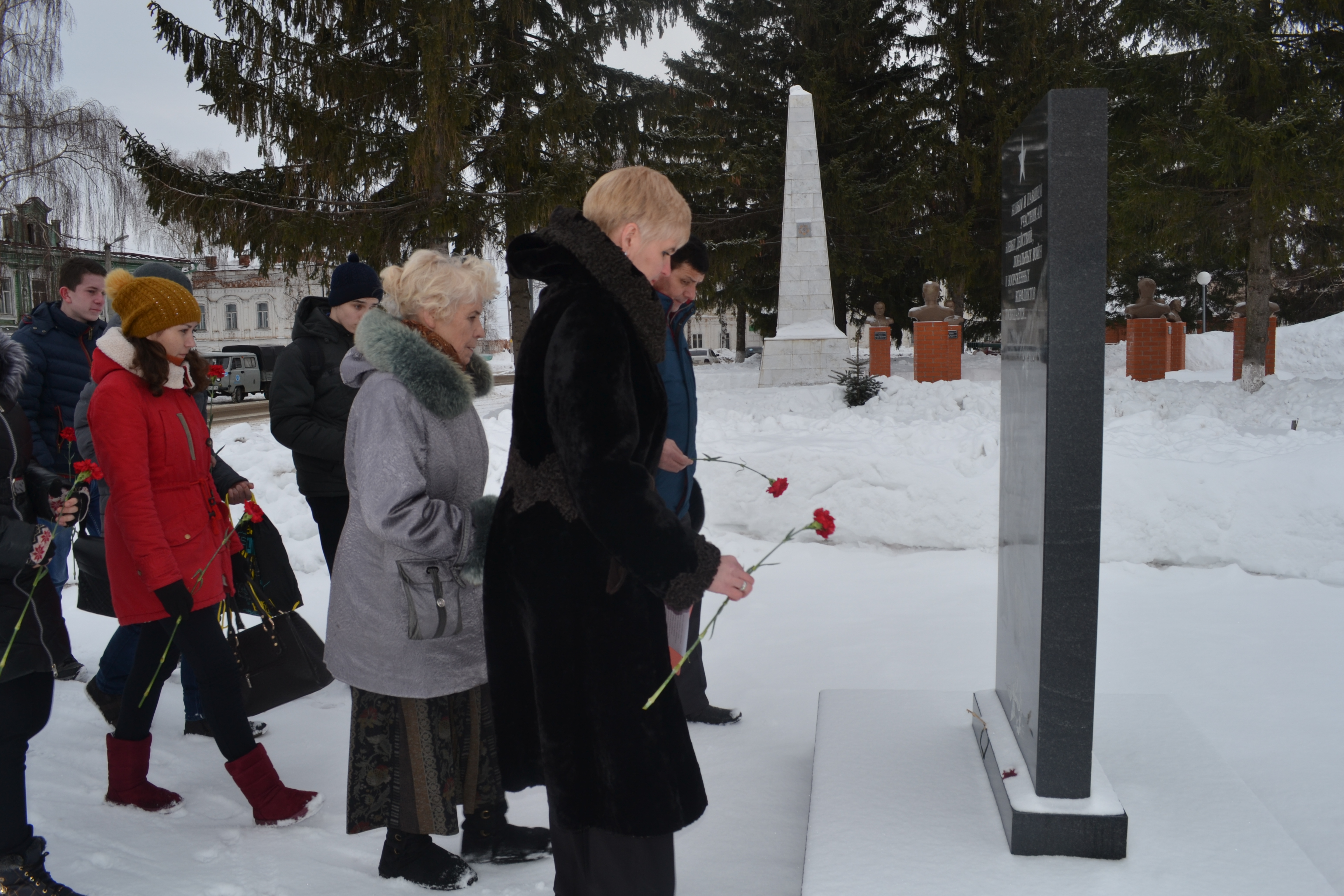 Воинам-афганцам – тетюшанам, выполнявшим интернациональный долг в Демократической Республике Афганистан, посвящена акция «Цветы на снегу», организуемая Музеем истории Тетюшского края ежегодно 15 февраля - в день вывода наших войск из ДРА. В этом году акция проведена со студентами 13 группы Тетюшского сельскохозяйственного техникума, которые с преподавателем истории Ф.Г.Сагировым приняли участие в музейном уроке Памяти «Войны афганской след не вытравить за много-много лет». Кадры фильмов об этой жестокой войне, страницы книги «Тетюшане - дорогами Афганистана», написанной на конкретных биографиях наших земляков – афганцев, заставили молодежь глубже понять: почему для нас 15 февраля – дата скорби и боли. Минутой молчания и возложением красных гвоздик к памятнику воинам – землякам, погибшим в горячих точках, завершилась эта, ставшая традиционной, музейная акция.