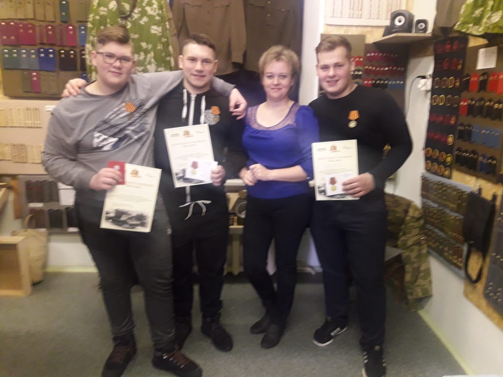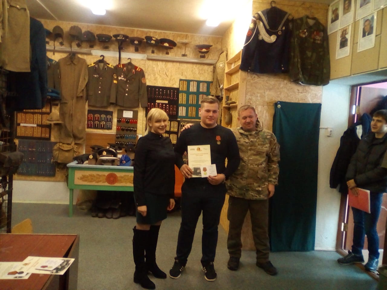 2 марта 2019 г. в музейной комнате клуба "Звезда" при Алексеевском Центре детского творчества состоялось вручение памятных знаков участникам военно-исторической реконструкции Керченско-Эльтигенской десантной операции 1943 г., которая состоялась в ноябре 2018 г. в г. Самара. Знаки были вручены от имени Самарского оргкомитета ежегодного "Парада Памяти" директором недавно образованного подросткового клуба "Импульс" п.г.т. Алексеевское Дубицкой Анной Владимировной. И пусть паятные знаки - это вовсе ненастоящие медали, но для подростков и молодых людей это знак внимания и положительной оценки их участия в военно-патриотической работе и практическом изучении военной истории нашей страны.